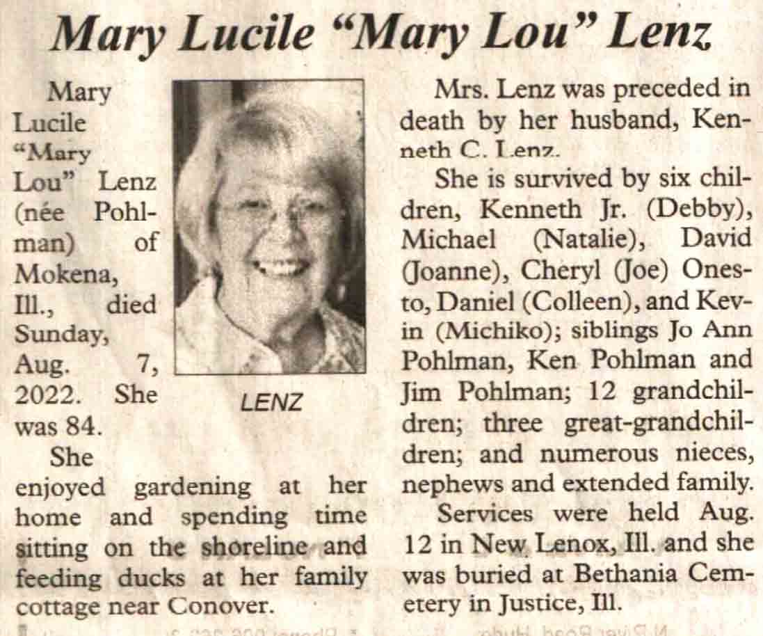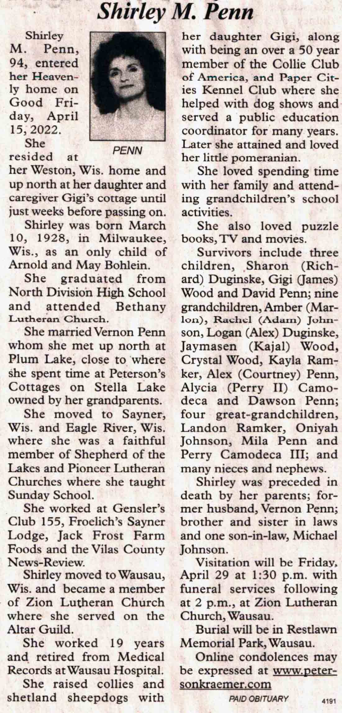 | Penn | Shirley M (Bohlein) | 10 Mar 1928 | 15 Apr 2022 | VCNR | 27 Apr 2022 | 4A |