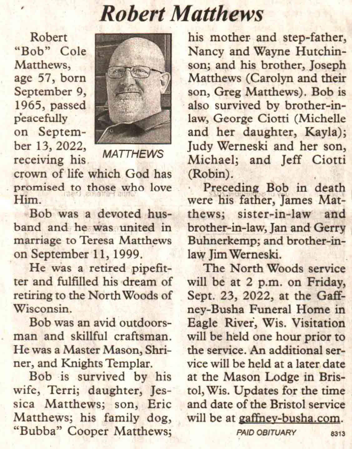 | Bonkowski | Paul Jay | c 1959 | 09 Feb 2022 | VCNR | 16 Mar 2022 | 4A |