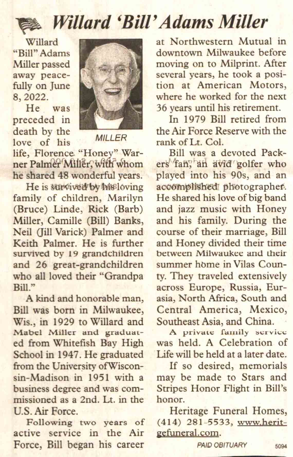 | Platner | John Leland 'Jack' | 13 Oct 1932 | 03 Jan 2022 | VCNR | 26 Jan 2022 | 5A |