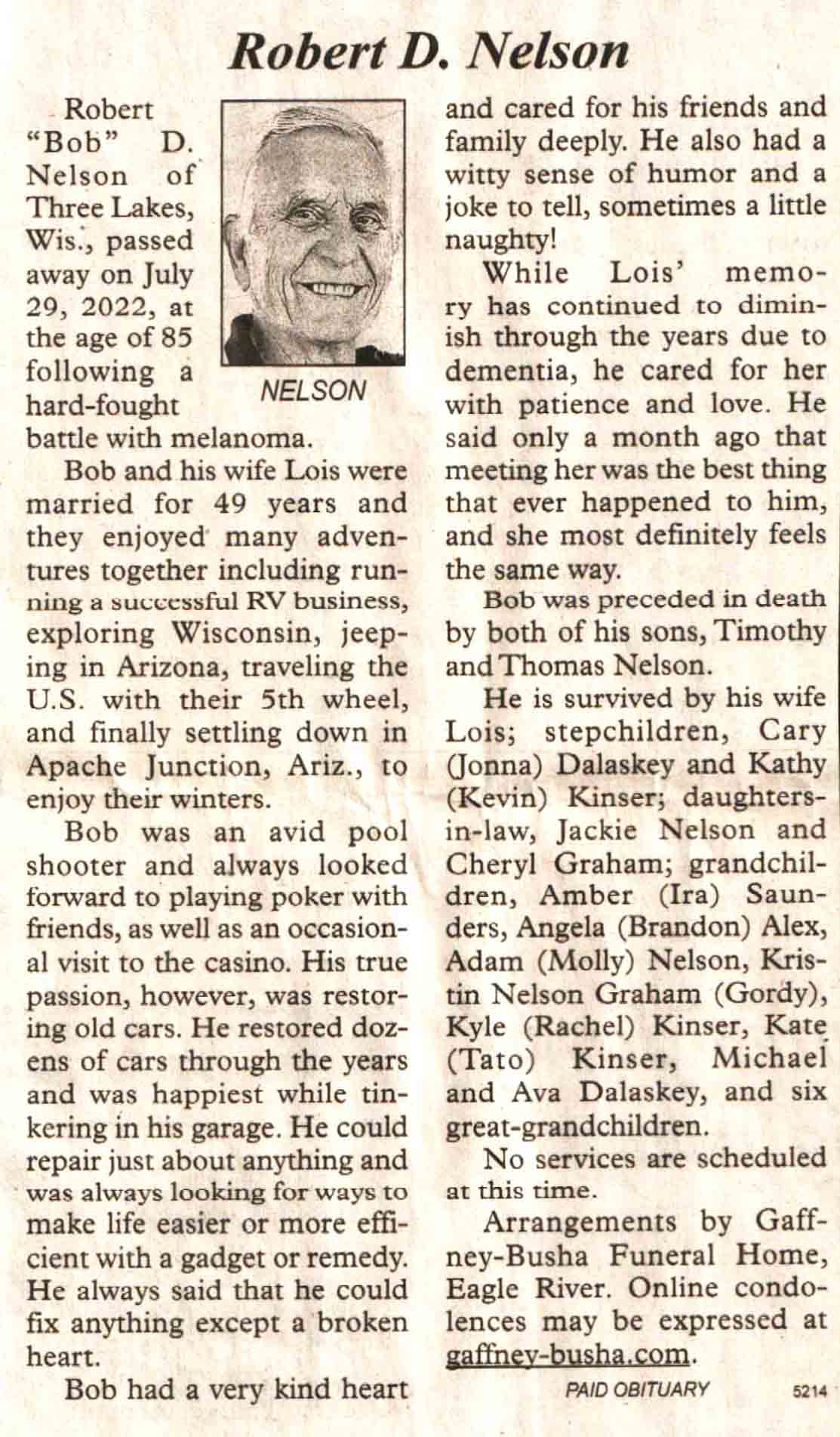 | Zeller | Gerald L 'Jerry' | 07 Oct 1935 | 15 Jan 2022 | VCNR | 26 Jan 2022 | 5A |