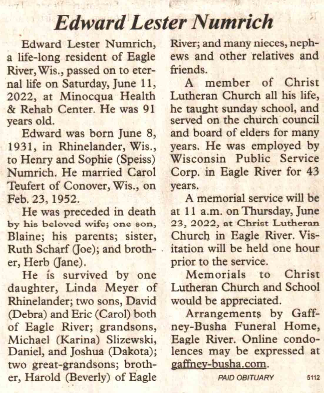 | Bauknecht | Jerry E #1 | 08 Dec 1945 | 06 Mar 2022 | VCNR | 16 Mar 2022 | 4A |