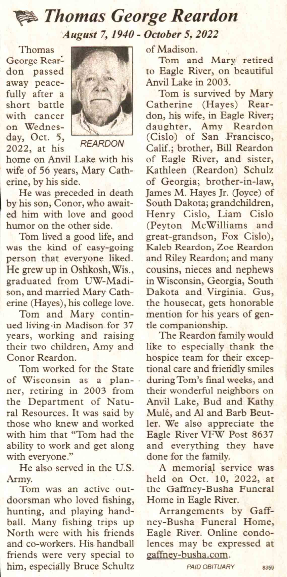 | Reardon | Thomas George | 07 Aug 1940 | 05 Oct 2022 | VCNR | 12 Oct 2022 | 4A |