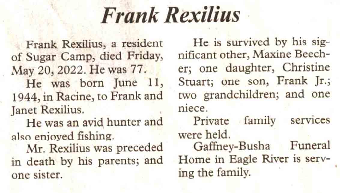 | Rexilius | Frank | 11 Jun 1944 | 20 May 2022 | VCNR | 01 Jun 2022 | 4A |