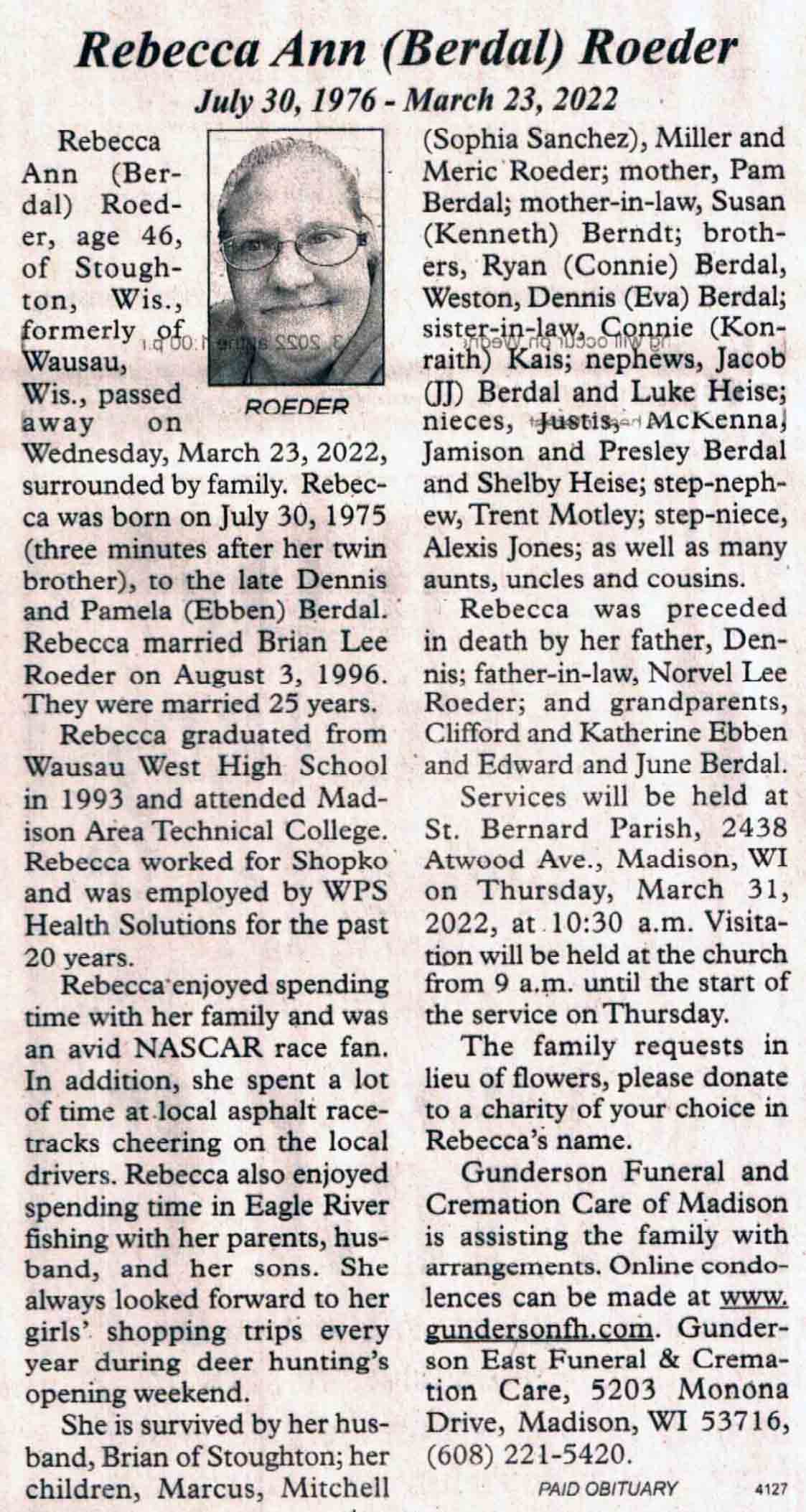 | Roeder | Rebecca Ann (Berdal) | 30 Jul 1976 | 23 Mar 2022 | VCNR | 30 Mar 2022 | 4A |