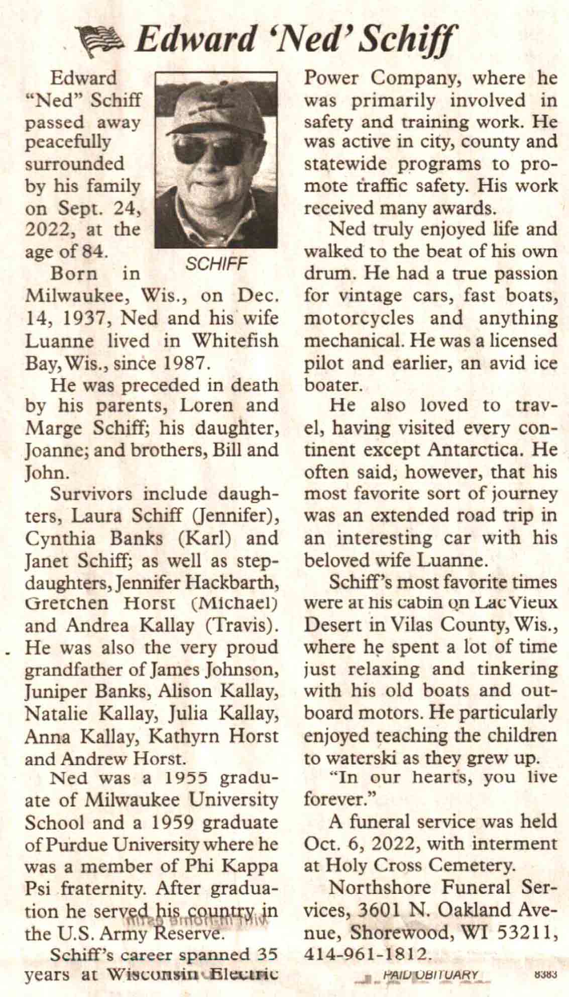 | Schiff | Edward 'Ned' | 14 Dec 1937 | 24 Sep 2022 | VCNR | 19 Oct 2022 | 4A |