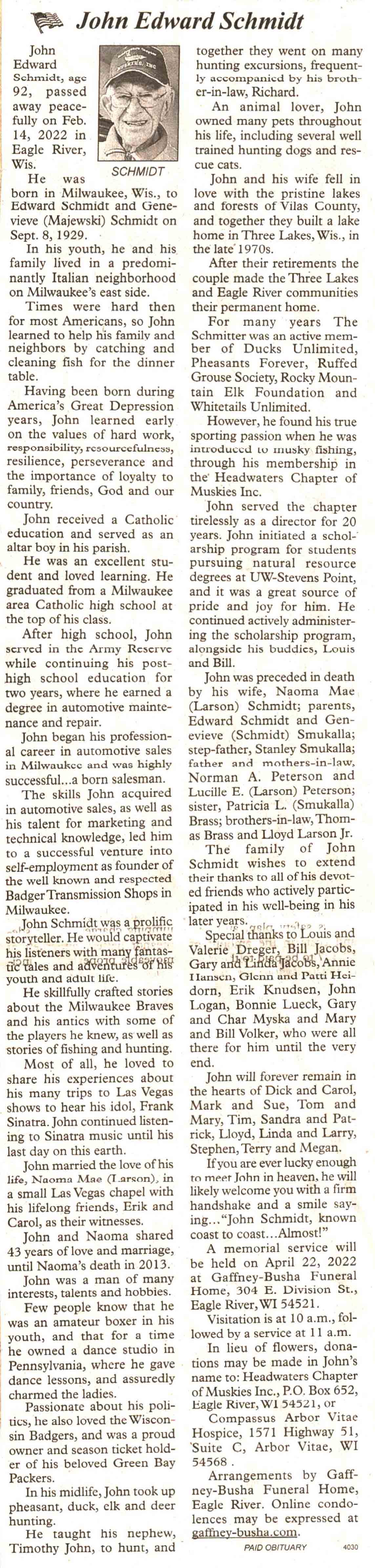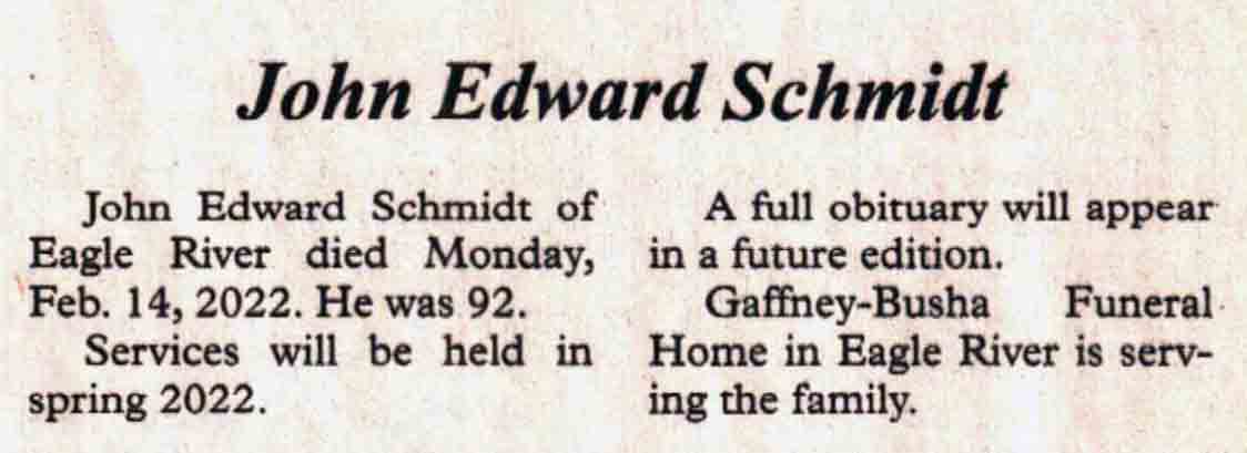 | Schmidt | John Edward #2 | 09 Aug 1929 | 14 Feb 2022 | VCNR | 02 Mar 2022 | 4A |