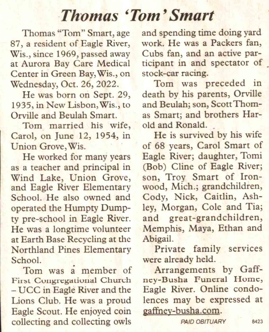 | Smart | Thomas 'Tom' | 29 Sep 1935 | 26 Oct 2022 | VCNR | 02 Nov 2022 | 4A |