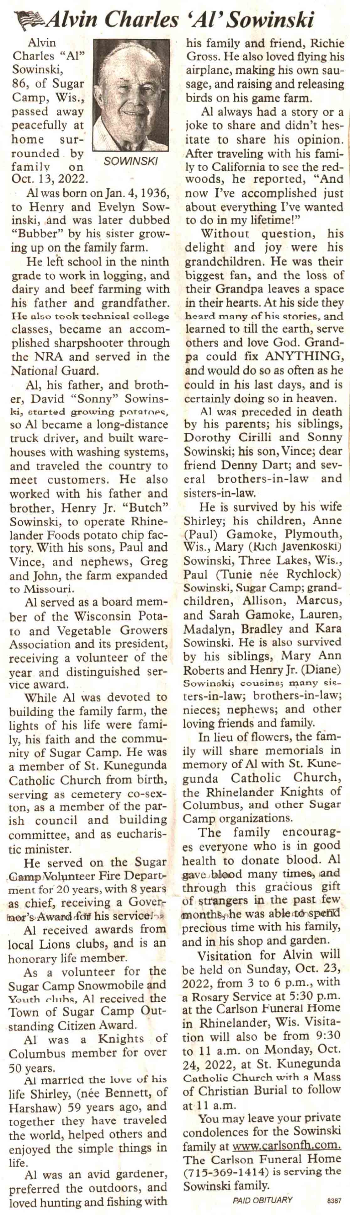 | Sowinski | Alvin George 'Al' #1 | 04 Jan 1936 | 13 Oct 2022 | VCNR | 19 Oct 2022 | 4A |