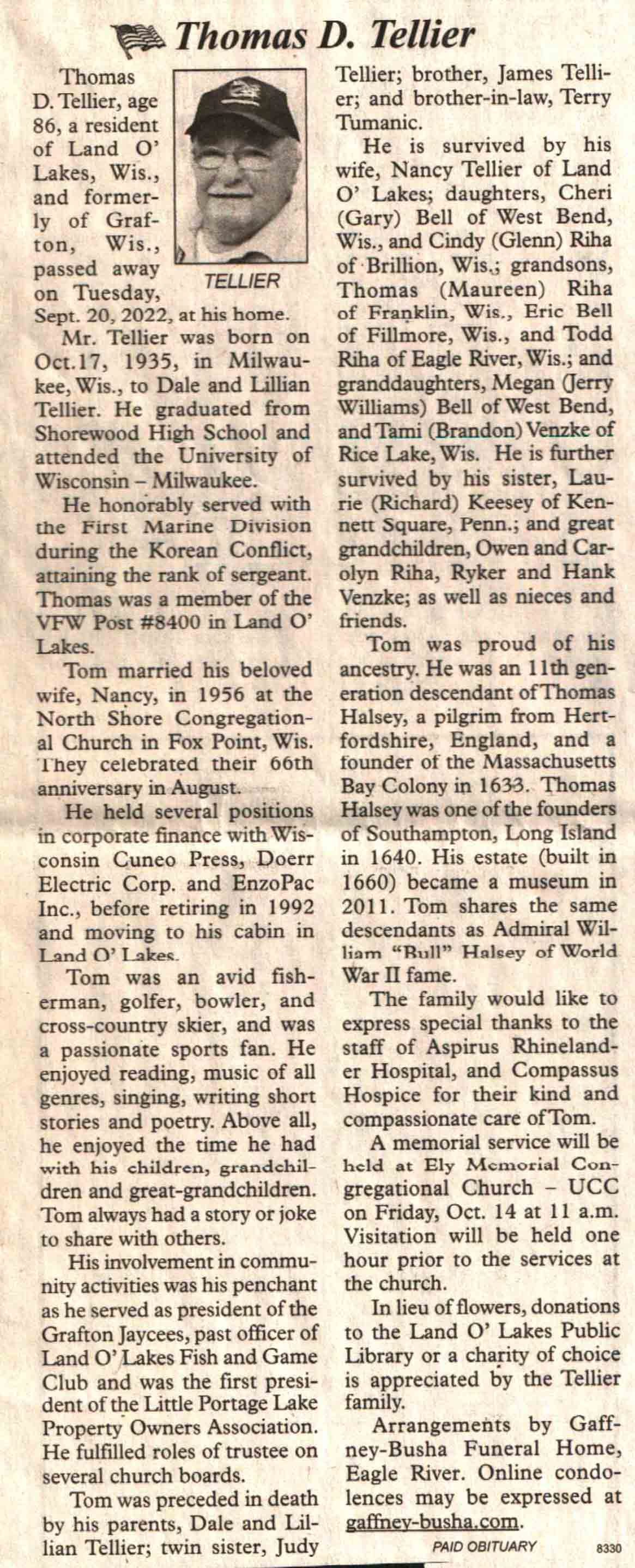 | Tellier | Thomas D #2 | 17 Oct 1935 | 20 Sep 2022 | VCNR | 12 Oct 2022 | 4A |