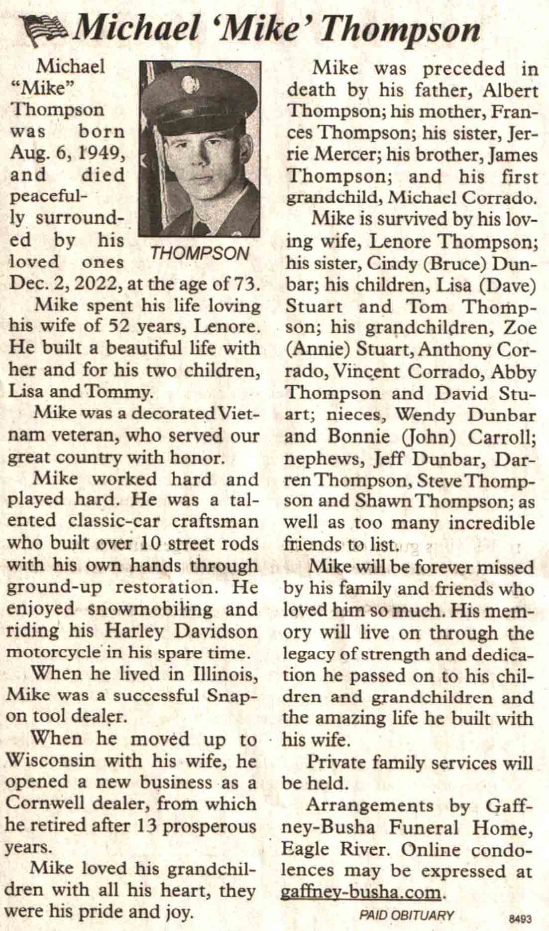 | Thompson | Michael 'Mike' | 06 Aug 1949 | 02 Dec 2022 | VCNR | 07 Dec 2022 | 4A |