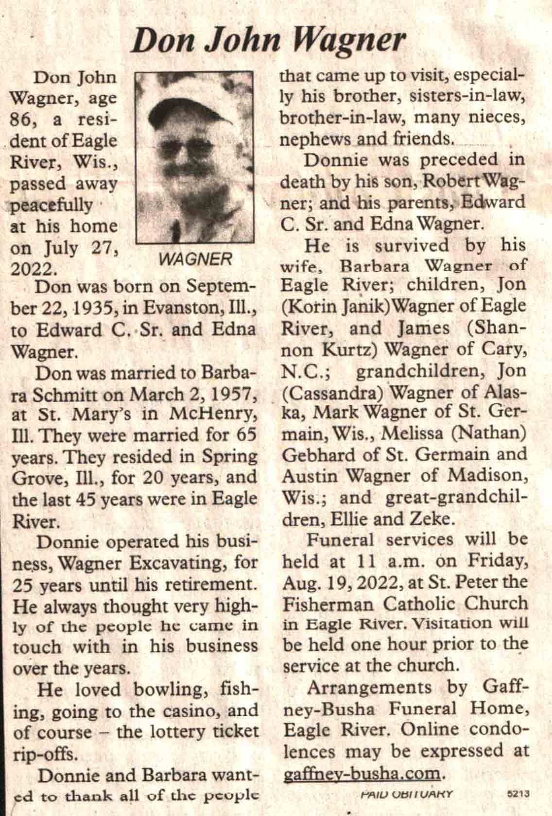 | Wagner | Linda Gail (Caves) | 04 Aug 1947 | 17 Jun 2022 | VCNR | 22 Jun 2022 | 5A |