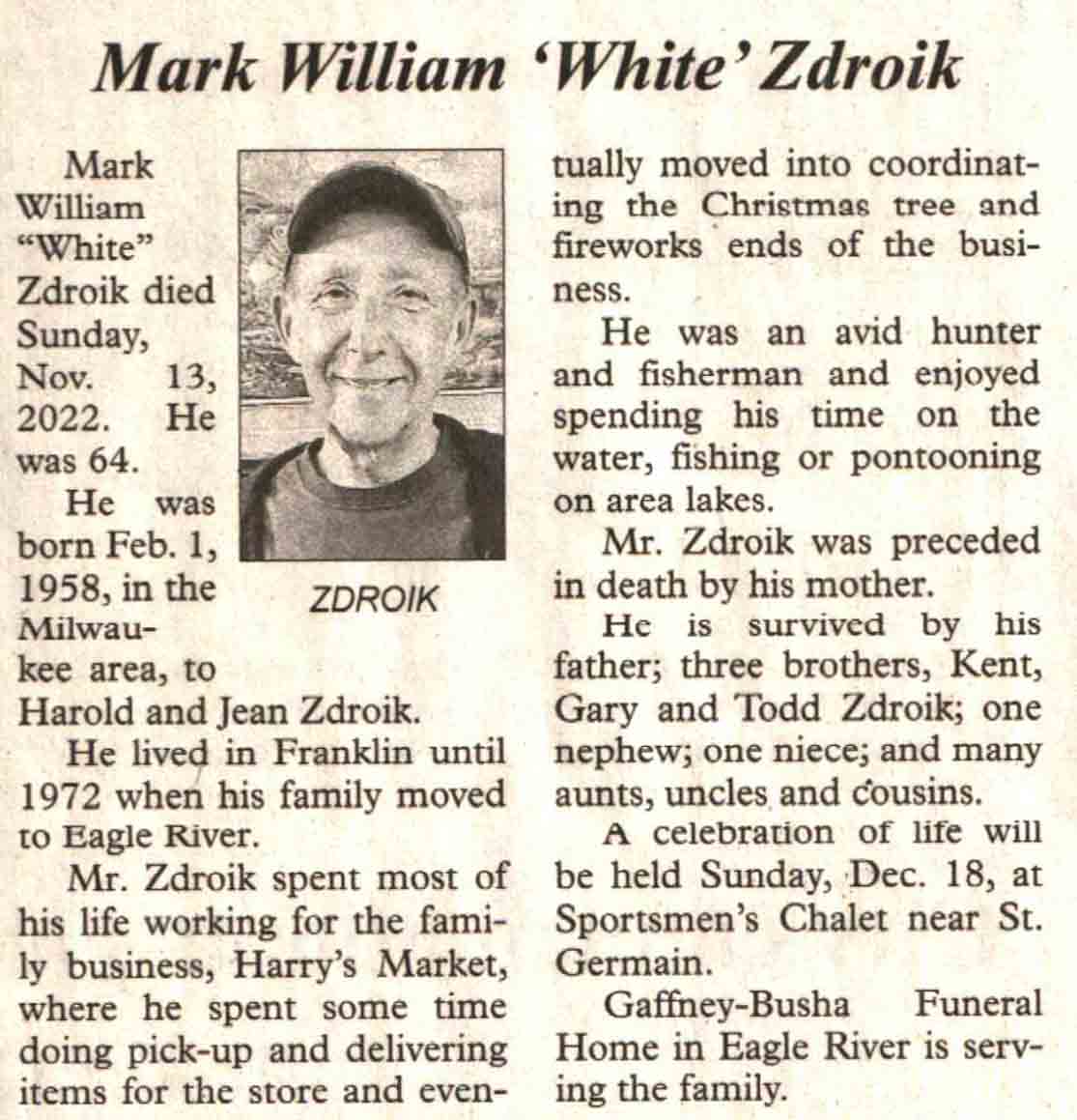 | Zdroik | Mark William 'White' #2 | 01 Feb 1958 | 13 Nov 2022 | VCNR | 07 Dec 2022 | 4A |