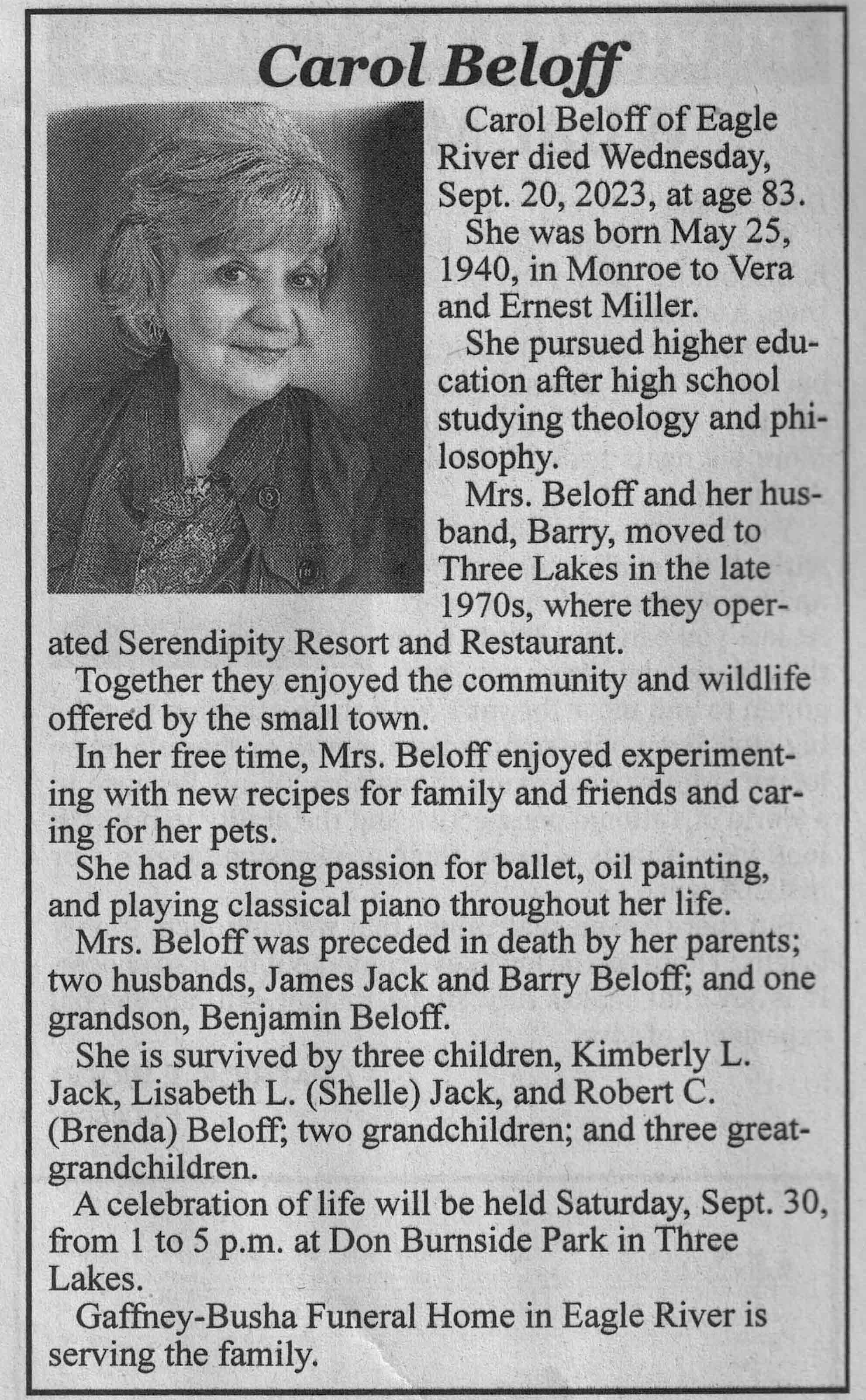 | Beloff | Carol (Miller) | 25 May 1940 | 20 Aug 2023 | VNCR | 27 Sep 2023 | 4A |