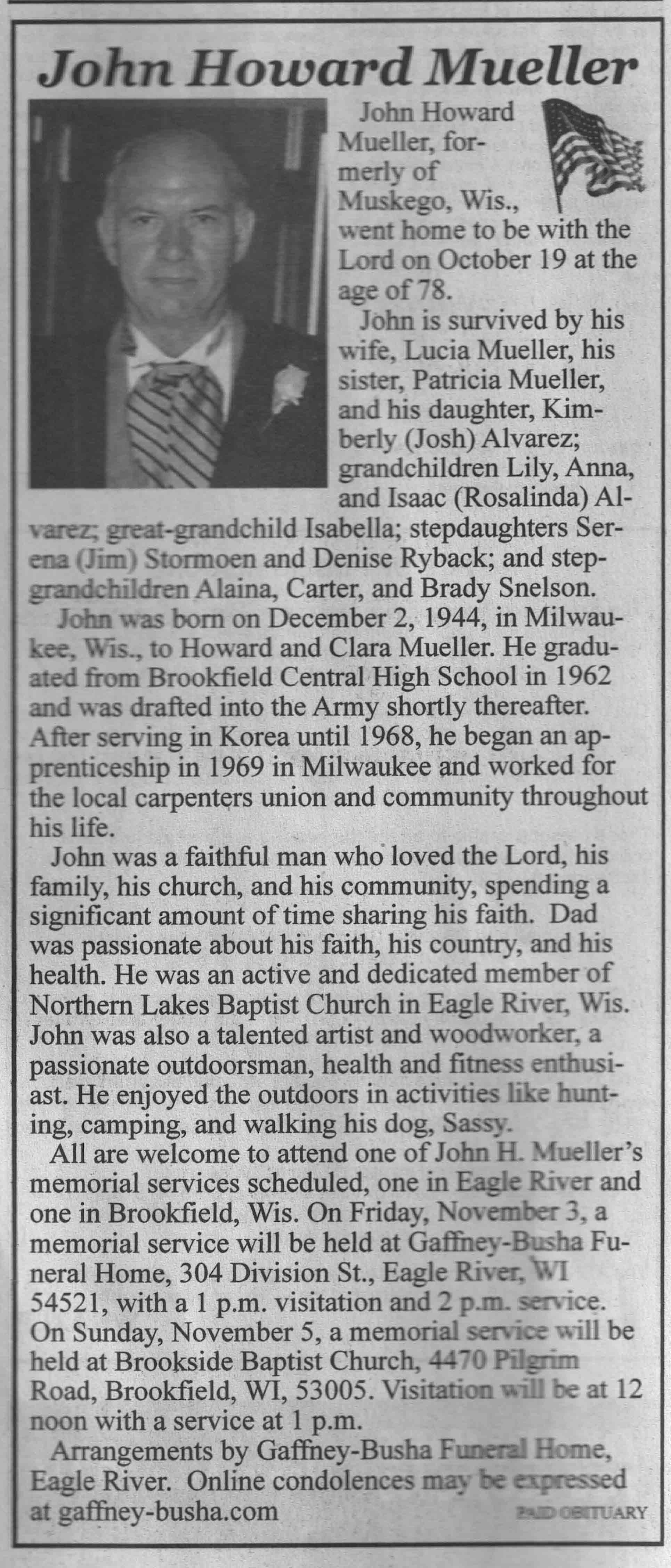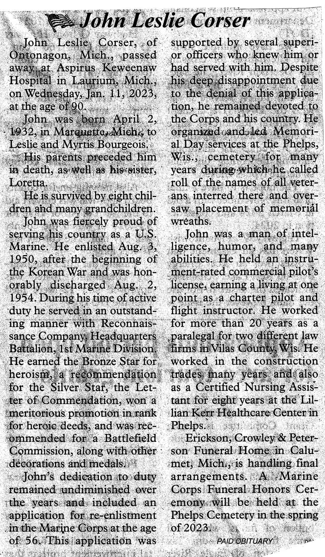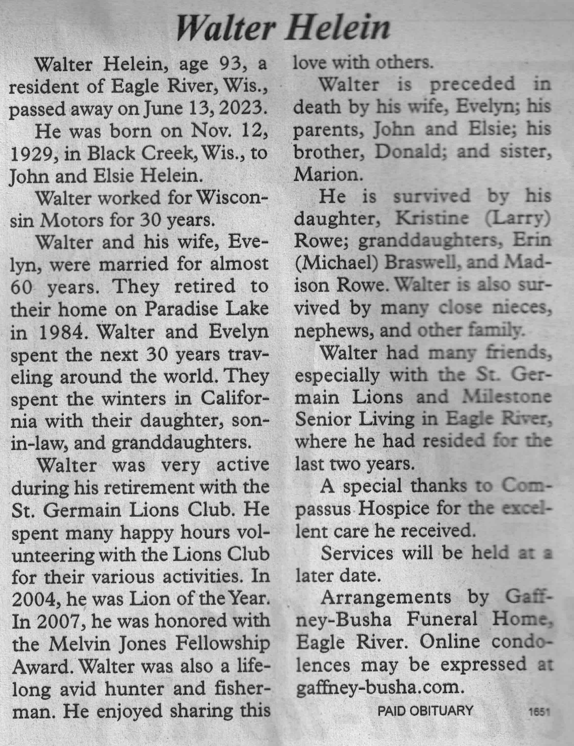 | Heikkinen | Duane M, Sr | 10 Feb 1947 | 30 Nov 2023 | VNCR | 06 Dec 2023 | 4A |