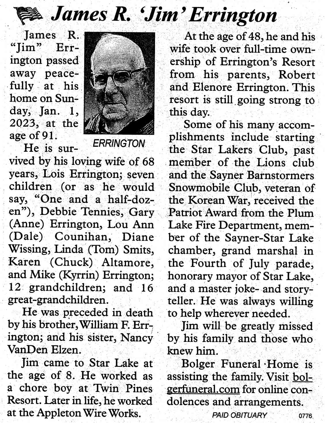 | Errington | James R 'Jim' | c 1932 | 01 Jan 2023 | VNCR | 04 Jan 2023 | 6A |