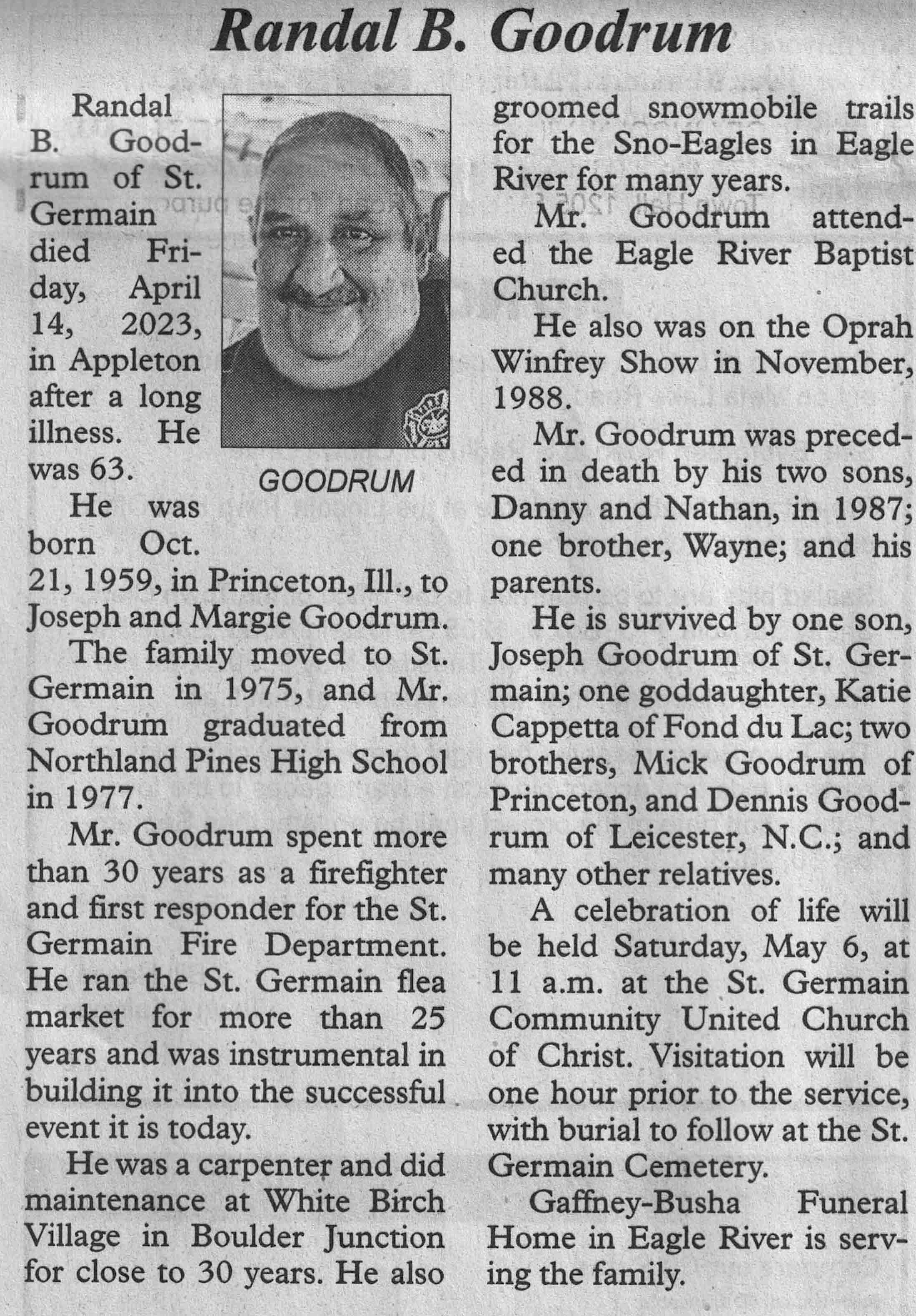 | Goodrum | Randal B | 21 Oct 1959 | 14 Apr 2023 | VNCR | 03 May 2023 | 4A |