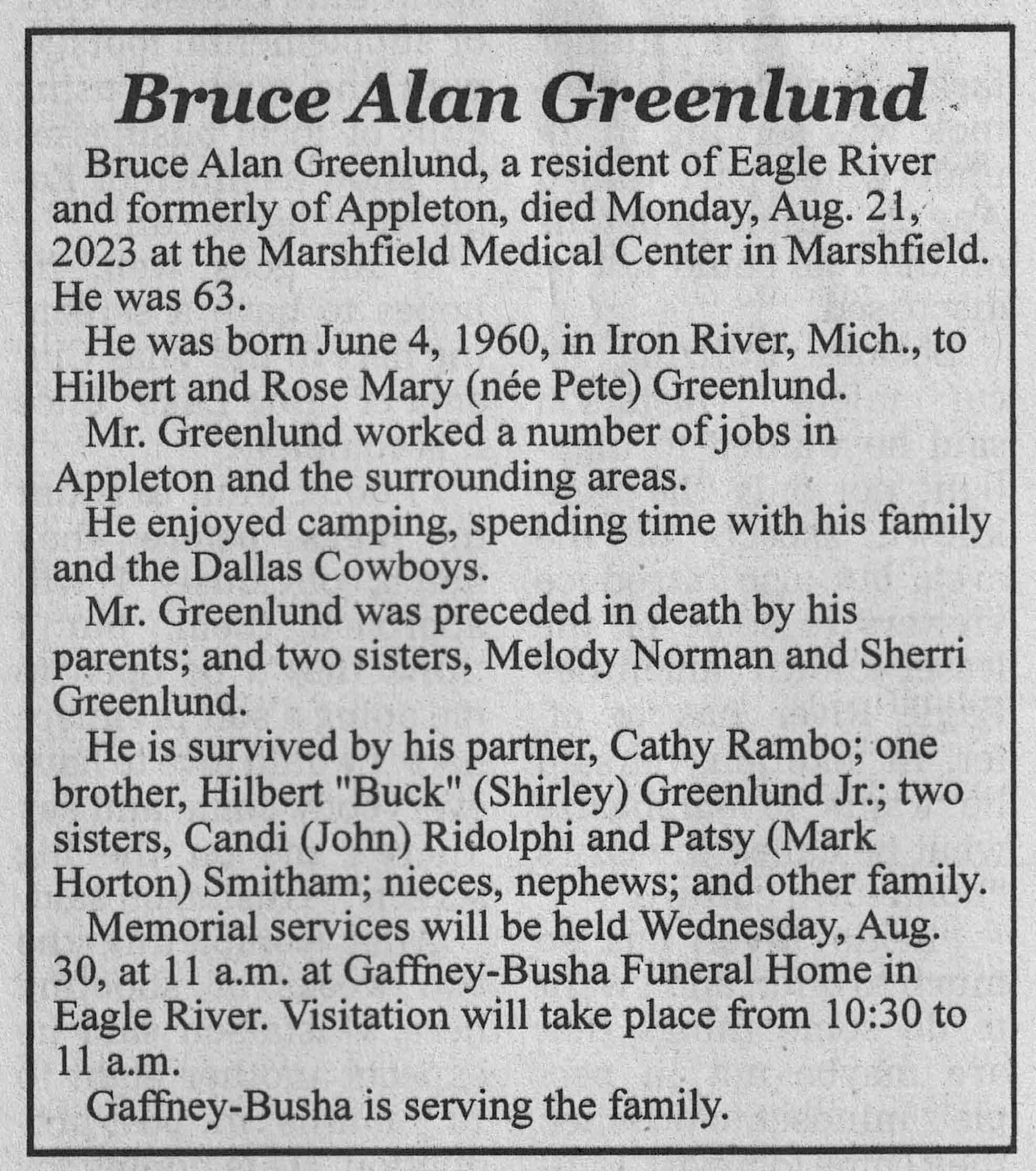 | Greenlund | Bruce Alan | 04 Jun 1960 | 21 Aug 2023 | VNCR | 30 Aug 2023 | 4A |