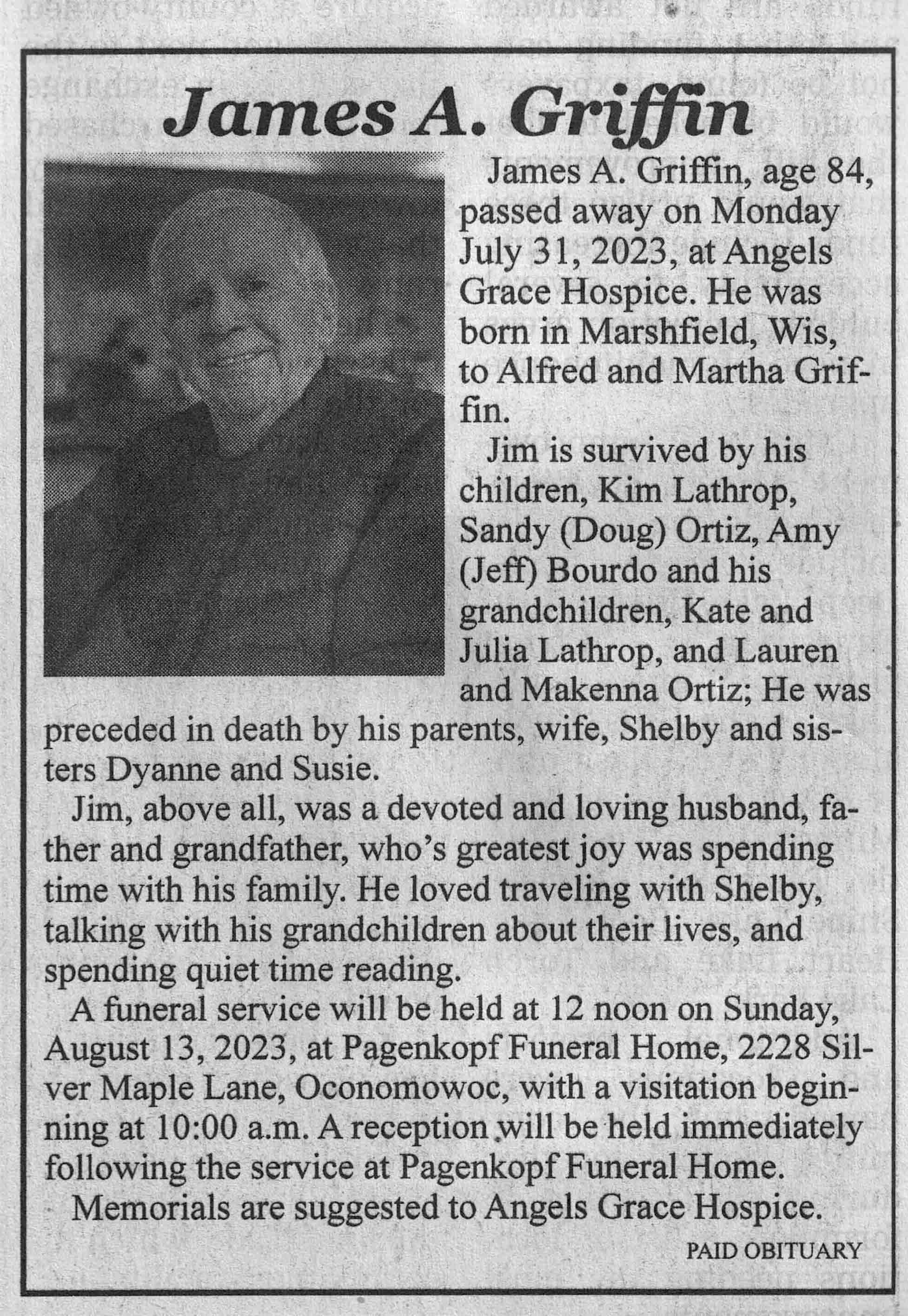 | Griffin | James A | c 1939 | 31 Jul 2023 | VNCR | 09 Aug 2023 | 4A |