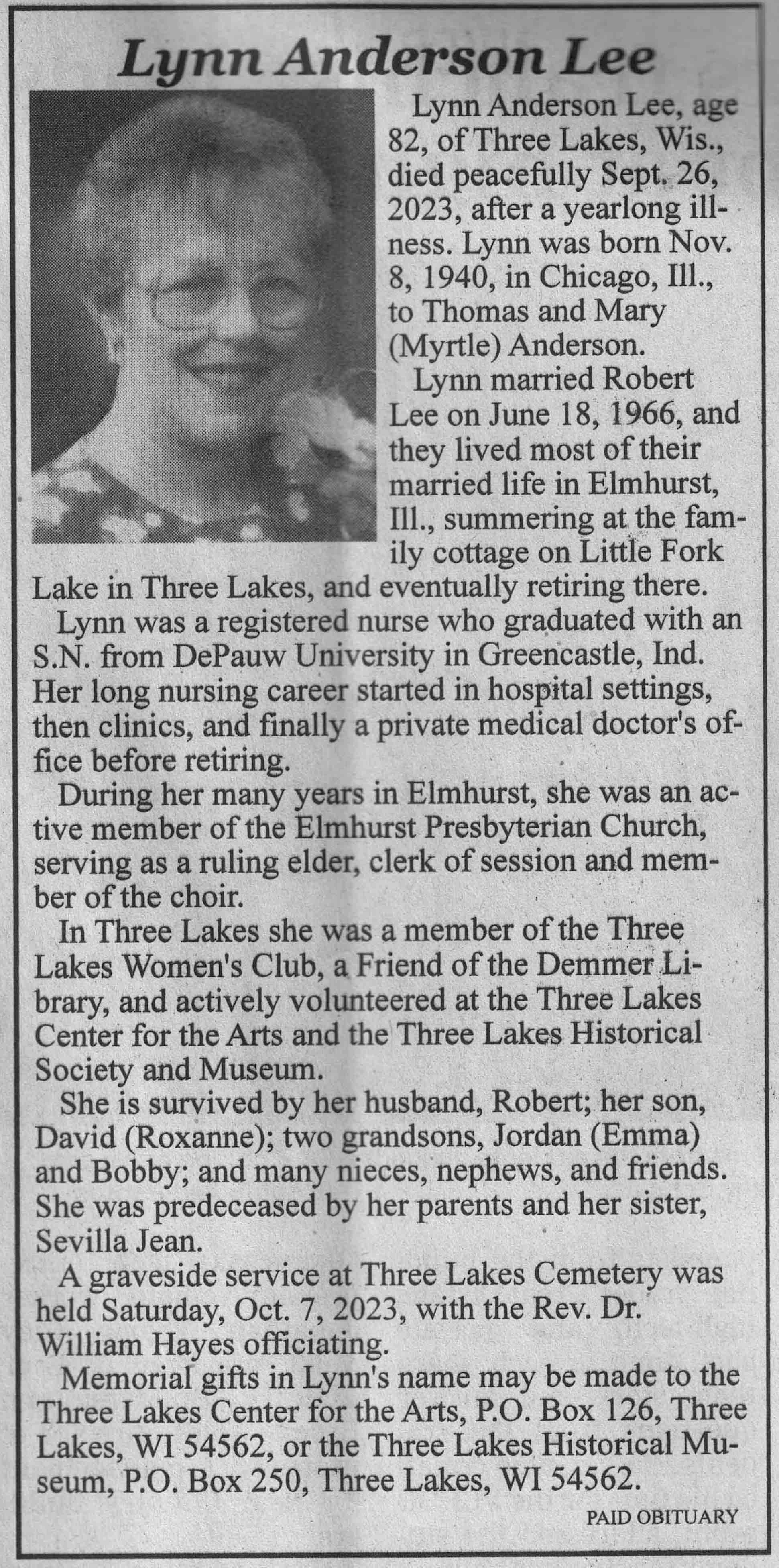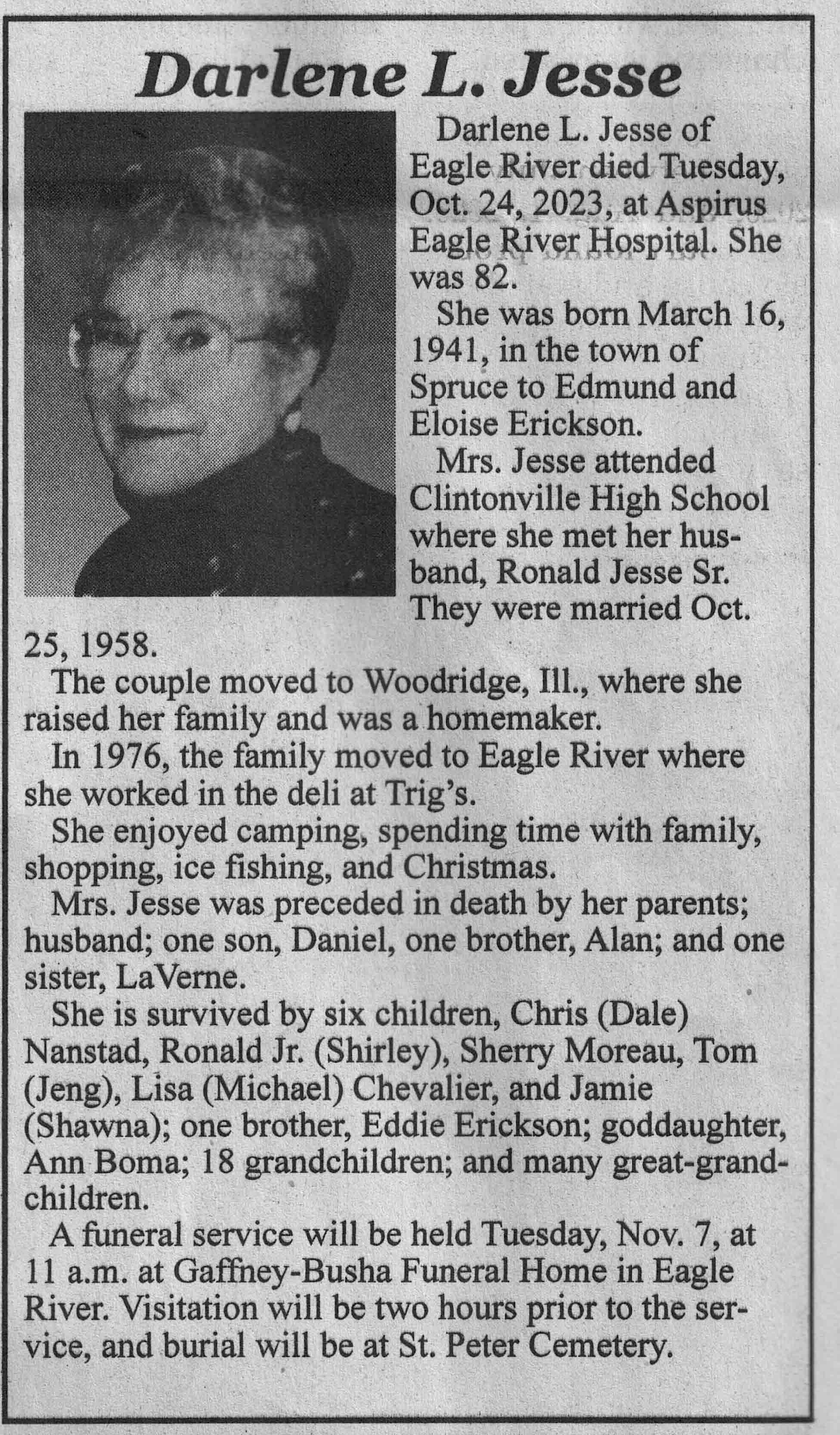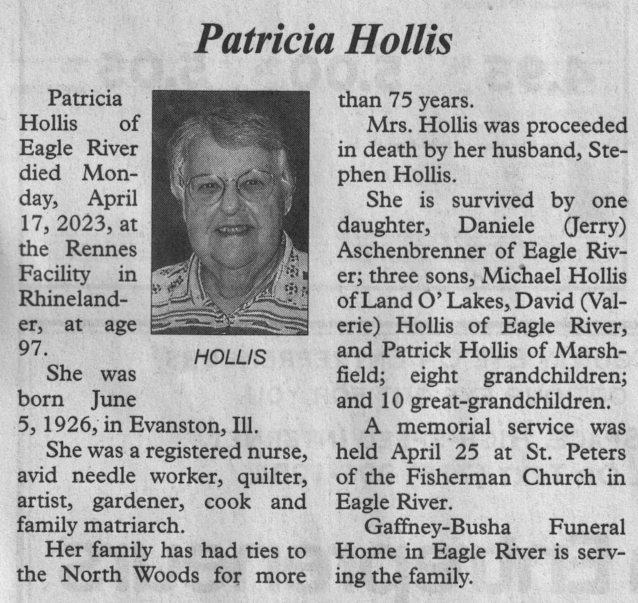 | Wendorf | Nancy J (Felch) | c 1933 | 14 Aug 2023 | VNCR | 23 Aug 2023 | 4A |
