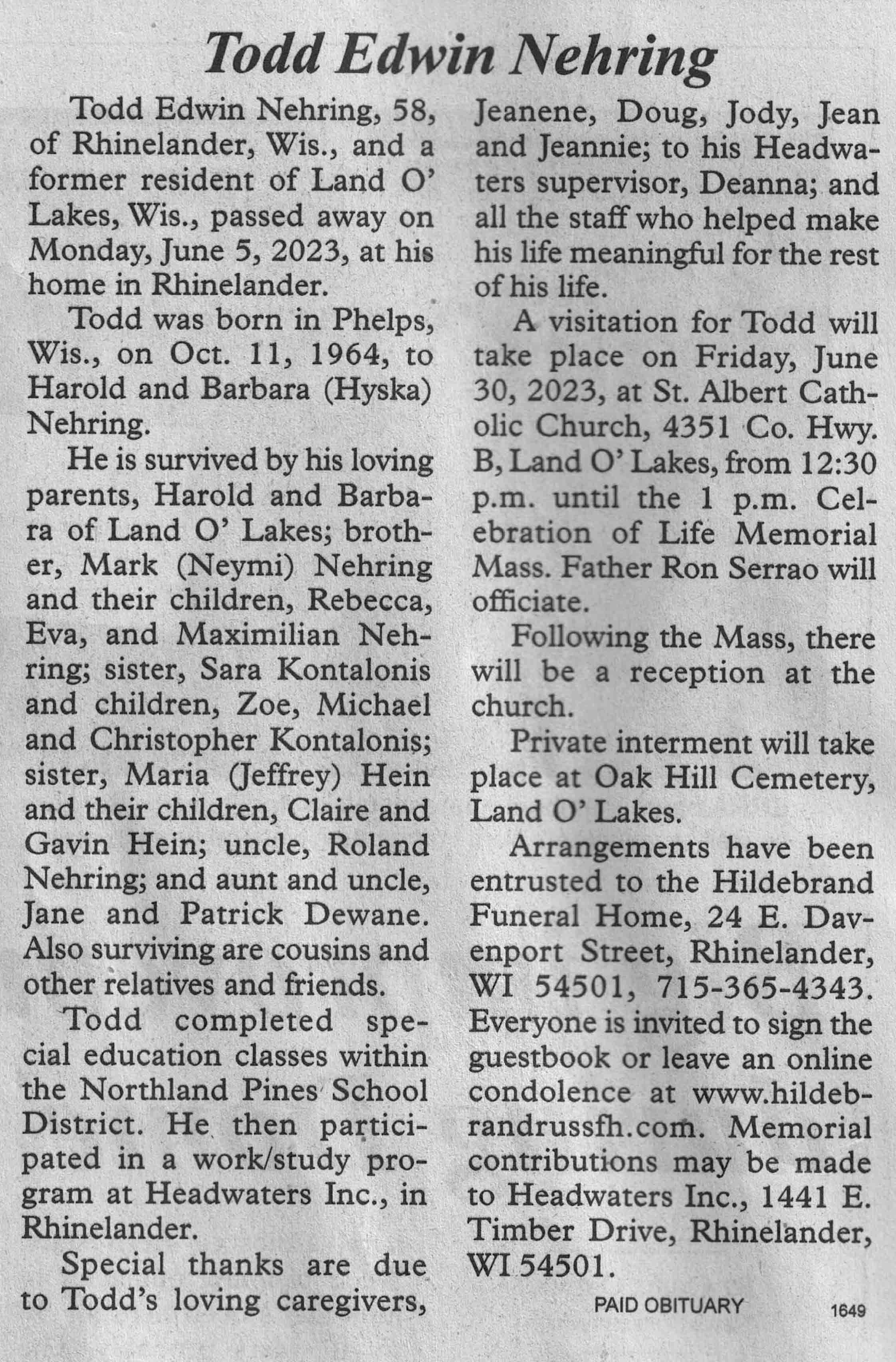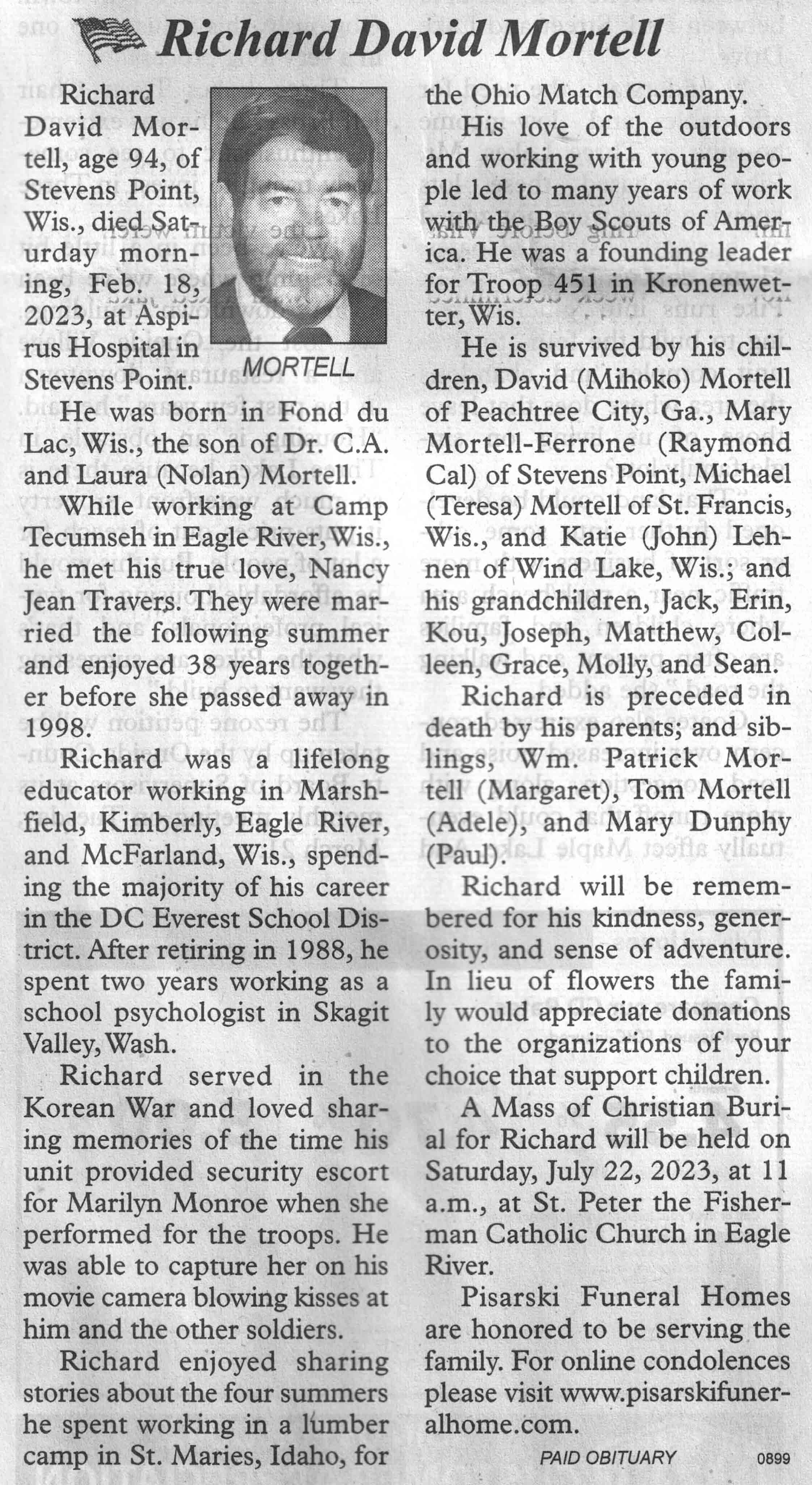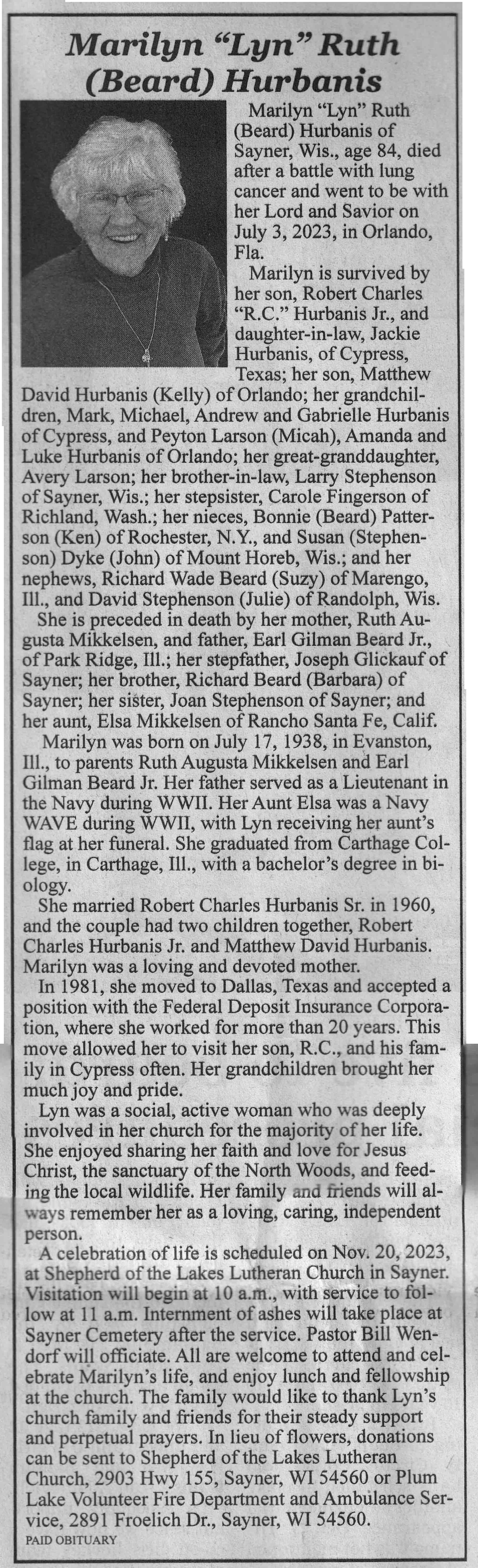 | Wendorf | Nancy J (Felch) | c 1933 | 14 Aug 2023 | VNCR | 23 Aug 2023 | 4A |