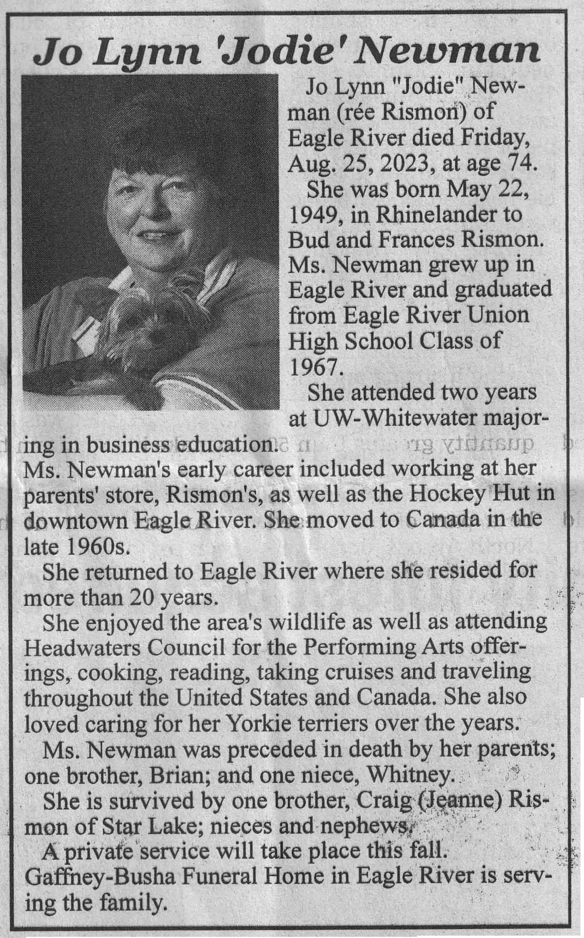 | Baillargeon | Shirley (Raisanen) | 18 Jul 1936 | 03 Aug 2023 | VNCR | 09 Aug 2023 | 4A |