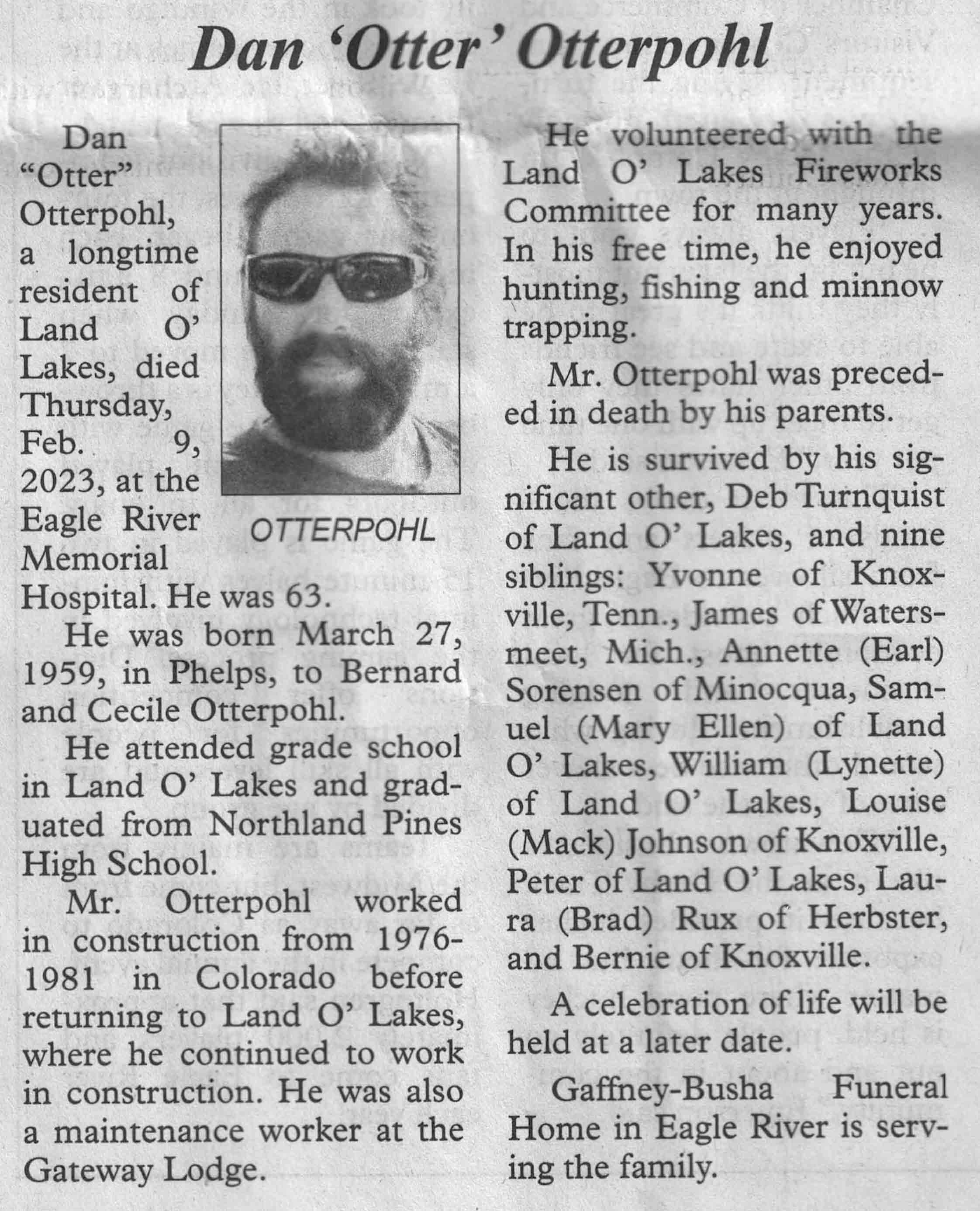 | Otterpohl | Dan 'Otter' | 27 Mar 1959 | 09 Feb 2023 | VNCR | 15 Feb 2023 | 4A |