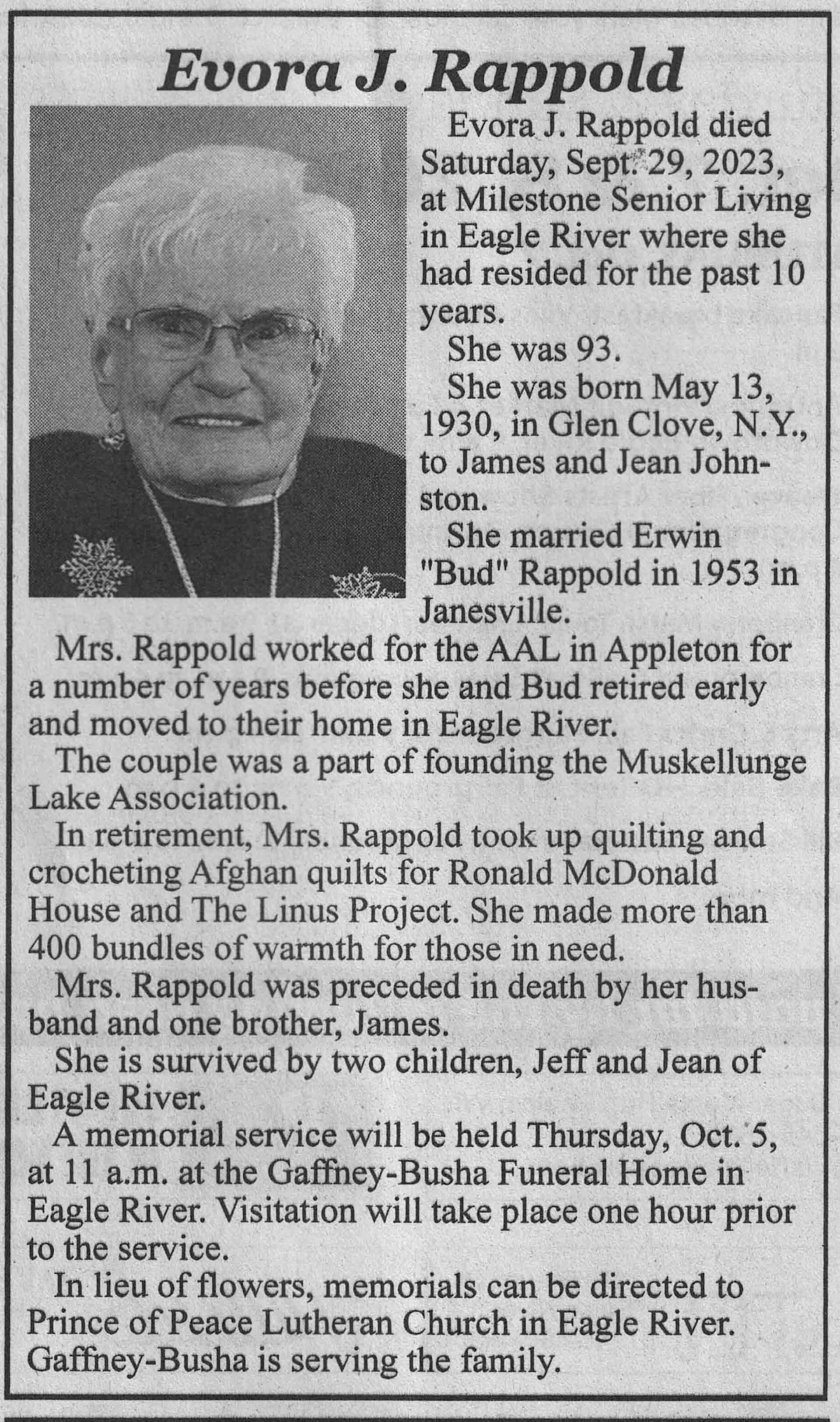 | Rappold | Evora J (Johnston) | 13 May 1930 | 29 Sep 2023 | VNCR | 04 Oct 2023 | 4A |