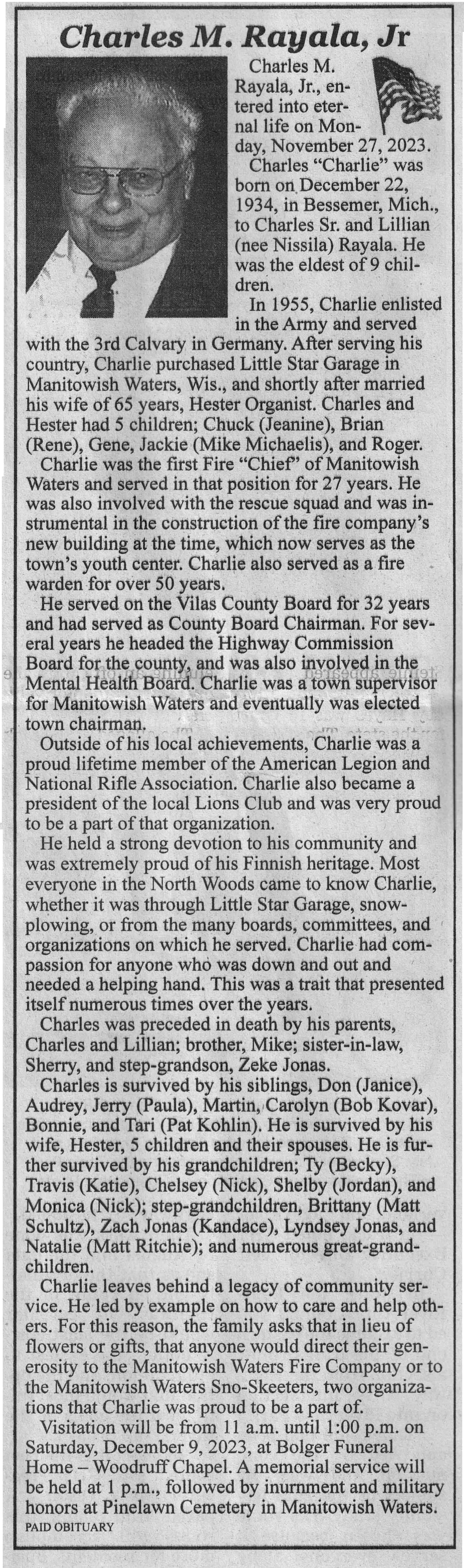 | Rayala | Charles M, Jr | 22 Dec 1934 | 27 Nov 2023 | VNCR | 06 Dec 2023 | 4A |