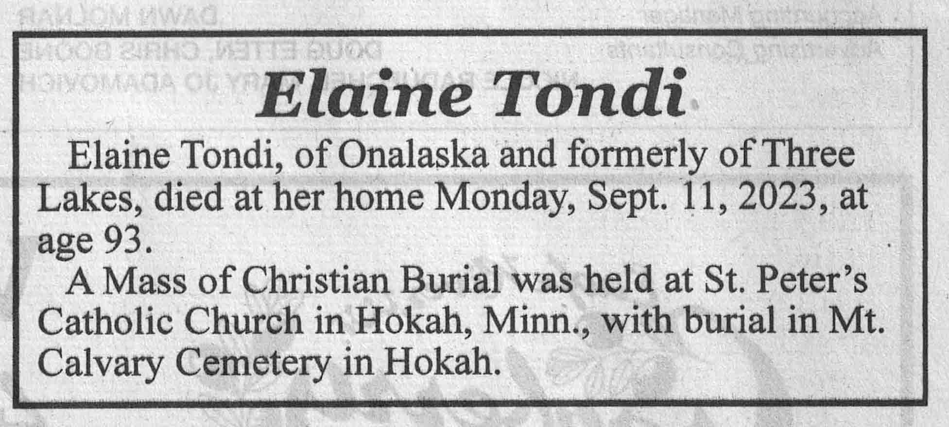 | Grondahl | Lillian Elizabeth (Carlson) | 26 Mar 1932 | 30 May 2023 | VNCR | 23 Aug 2023 | 4A |