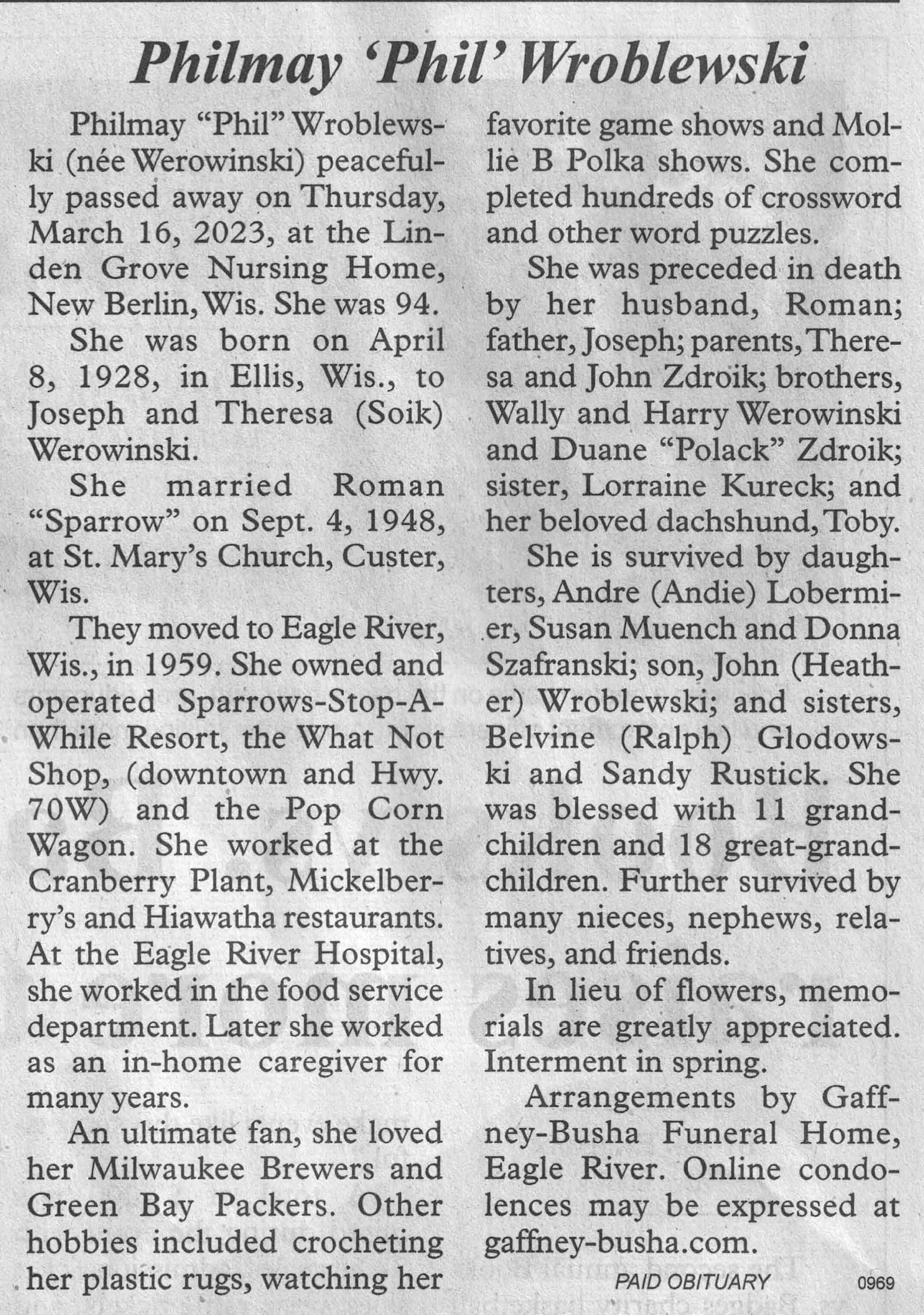| Wroblewski | Philmay 'Phil' (Werowinski) | 08 Apr 1928 | 16 Mar 2023 | VNCR | 29 Mar 2023 | 4A |