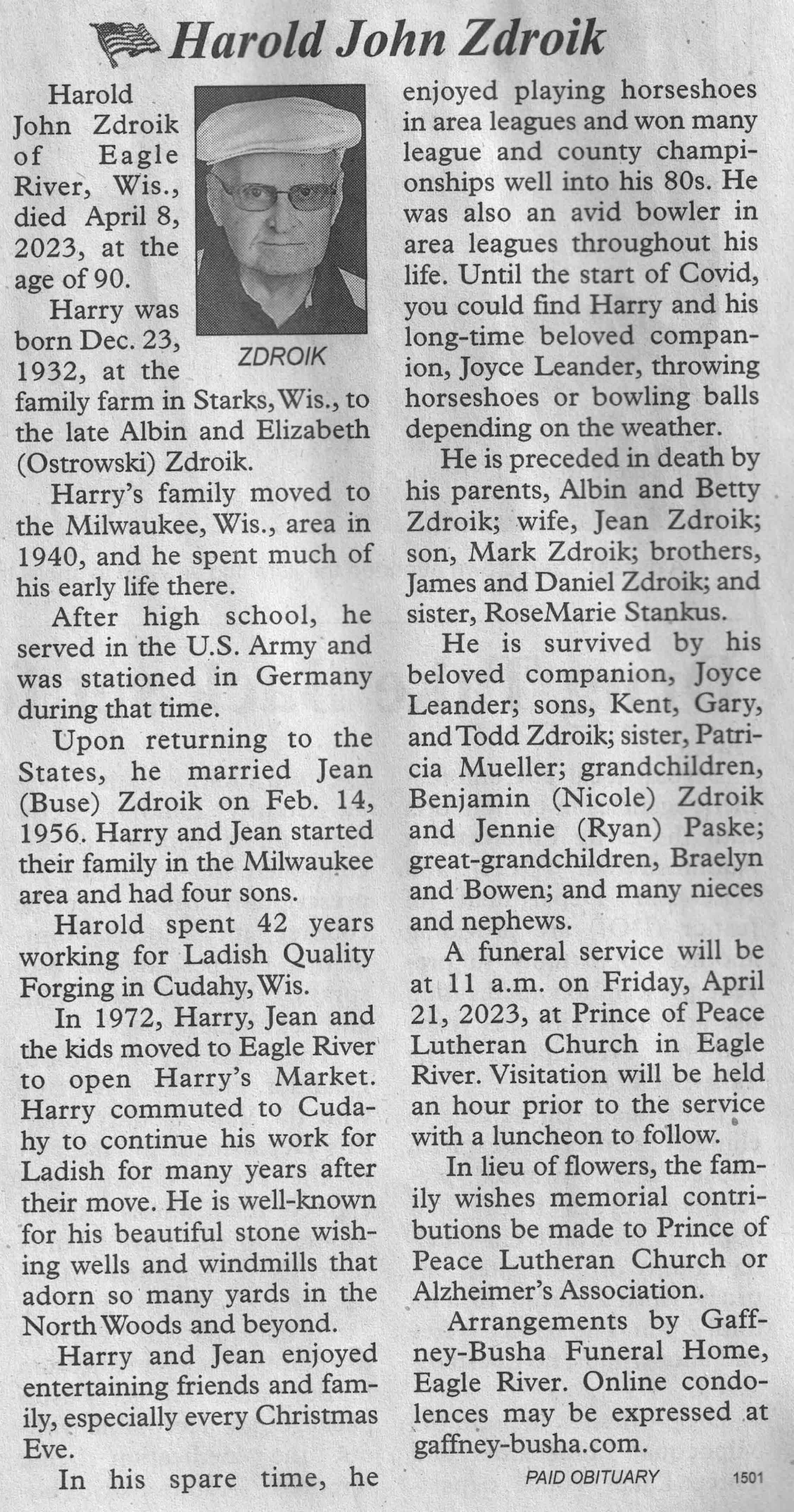 | Zdroik | Harold John | 23 Dec 1932 | 08 Apr 2023 | VNCR | 19 Apr 2023 | 4A |