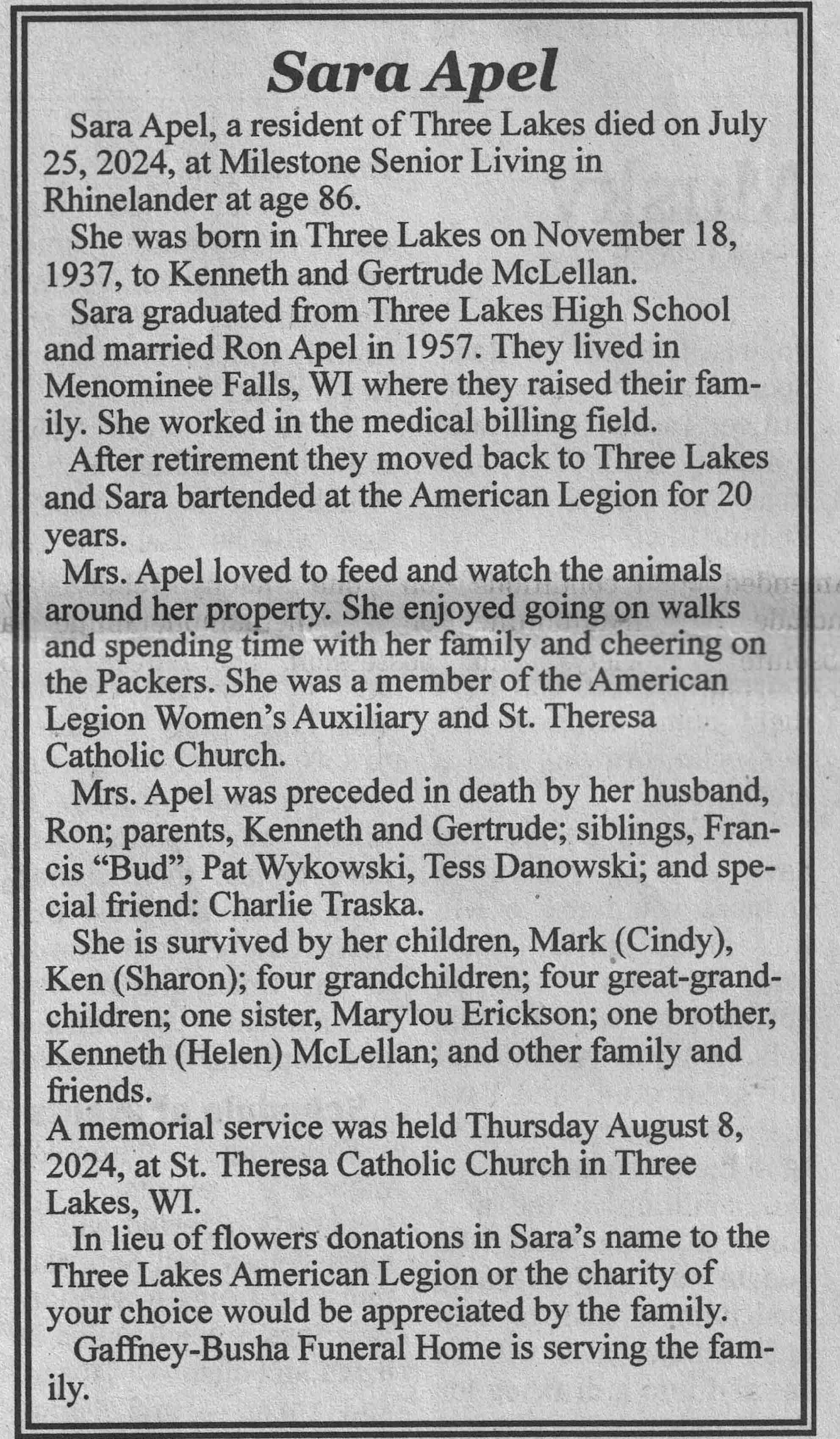 | Apel | Sara (McLellan) | 18 Nov 1937 | 25 Jul 2024 | VCNR | 14 Aug 2024 | 4A |