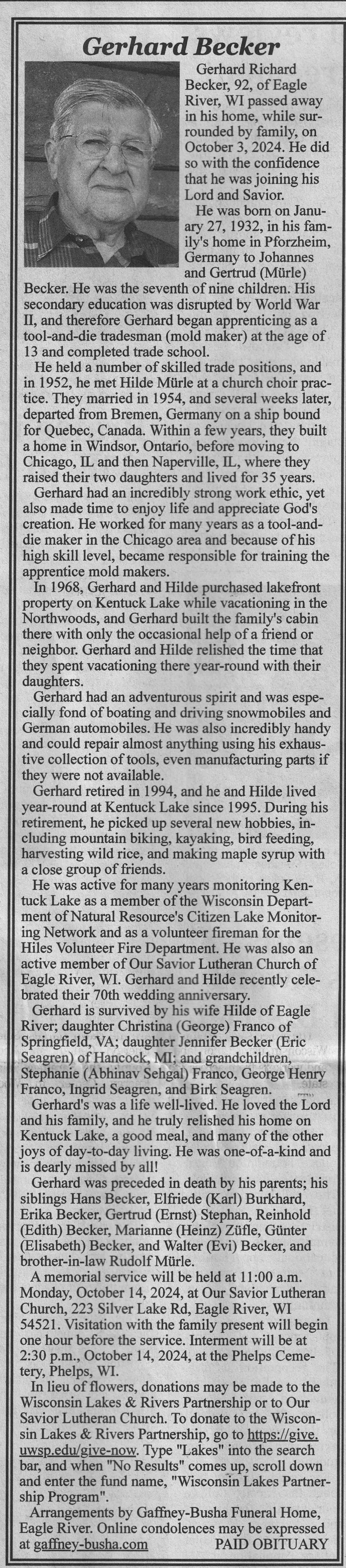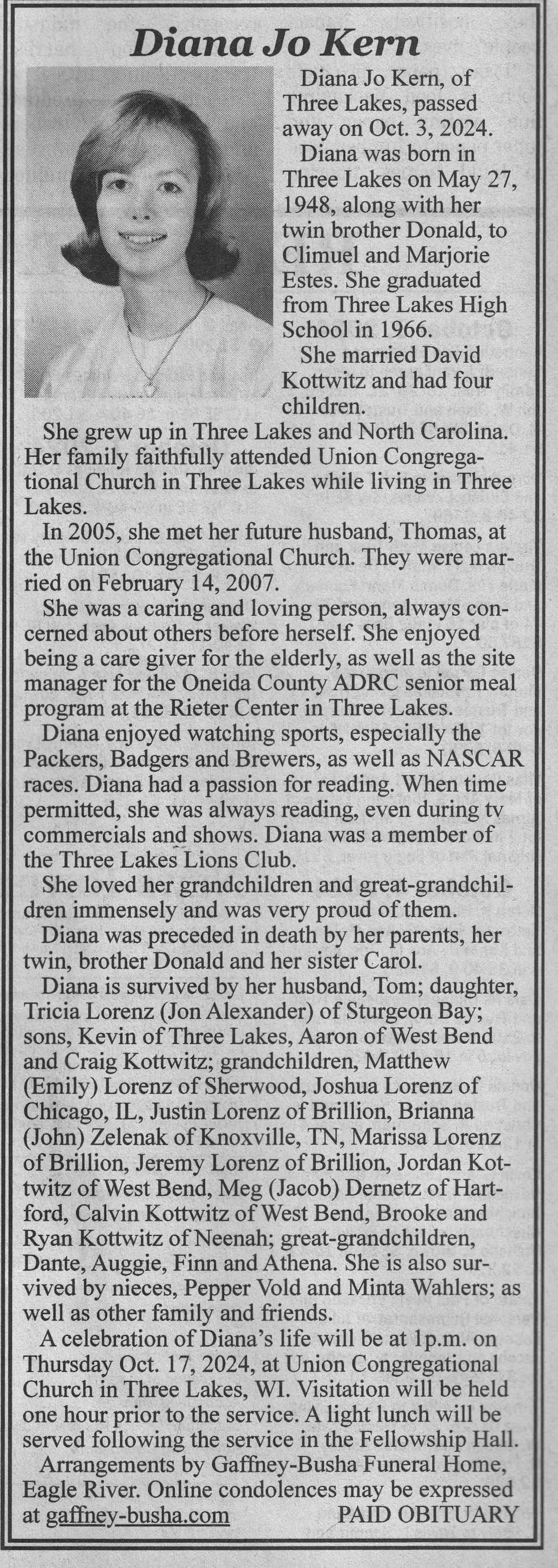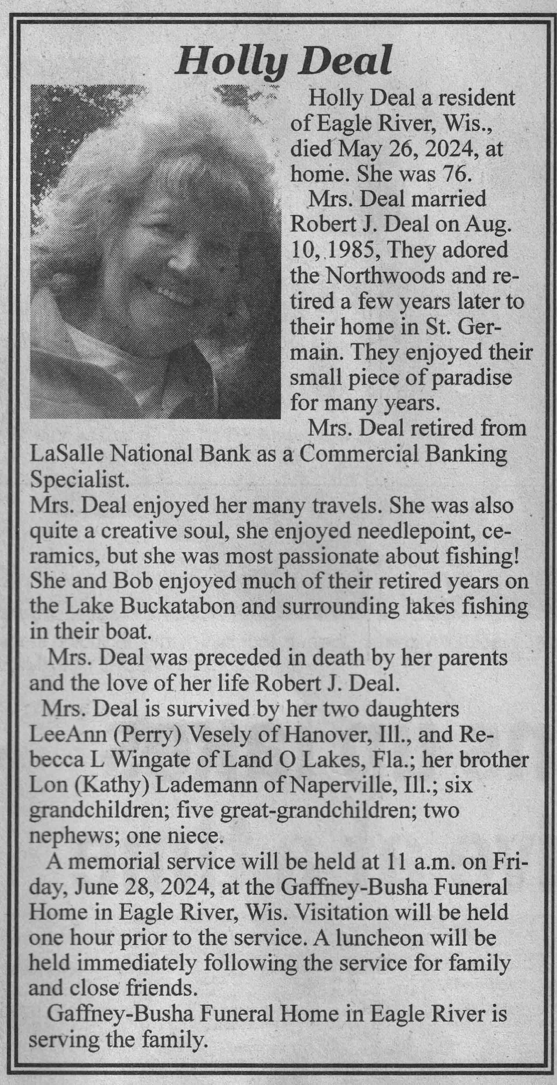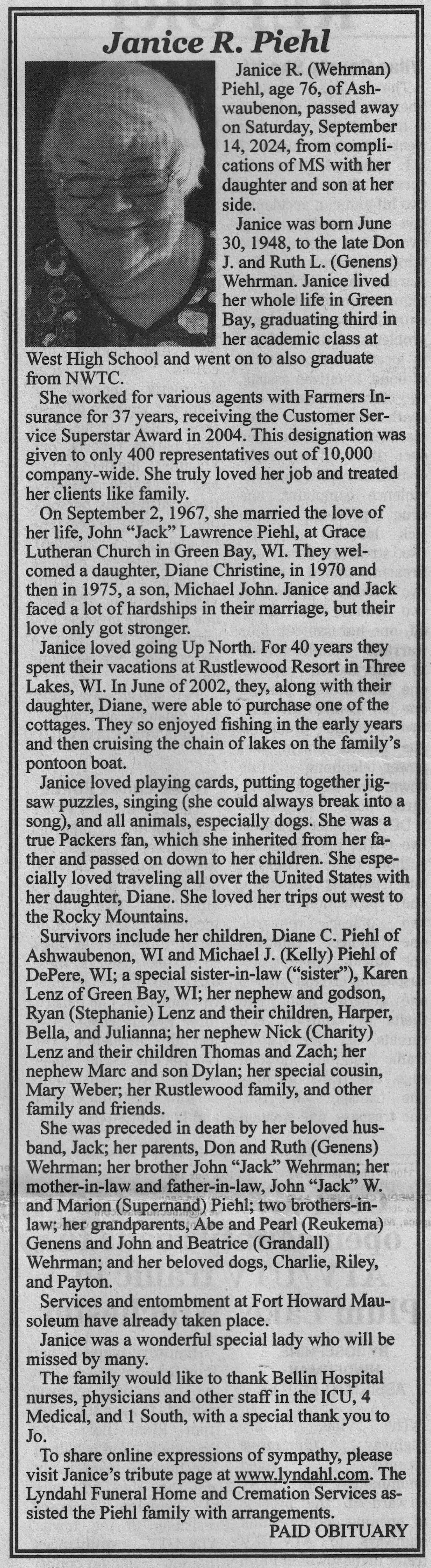| Piehl | Janice R (Wehrman) | 30 Jun 1948 | 14 Jul 2024 | VCNR | 25 Sep 2024 | 7A |
