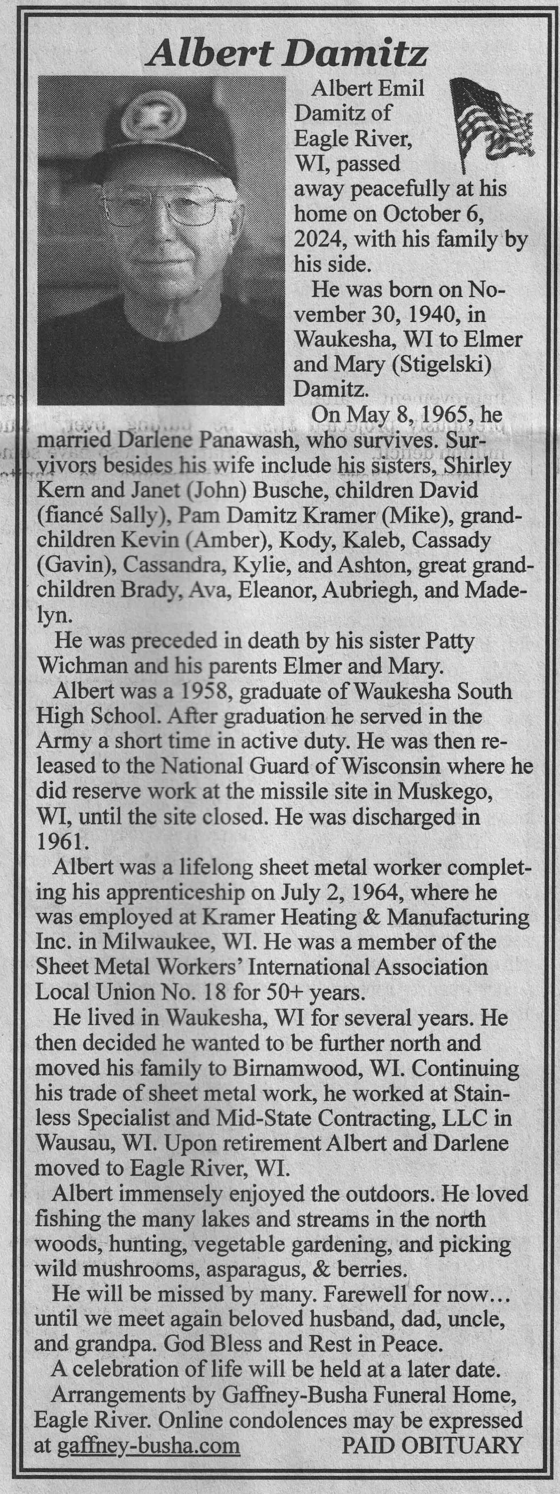 | Damitz | Albert Emil | 30 Nov 1940 | 06 Oct 2024 | VCNR | 09 Oct 2024 | 4A |