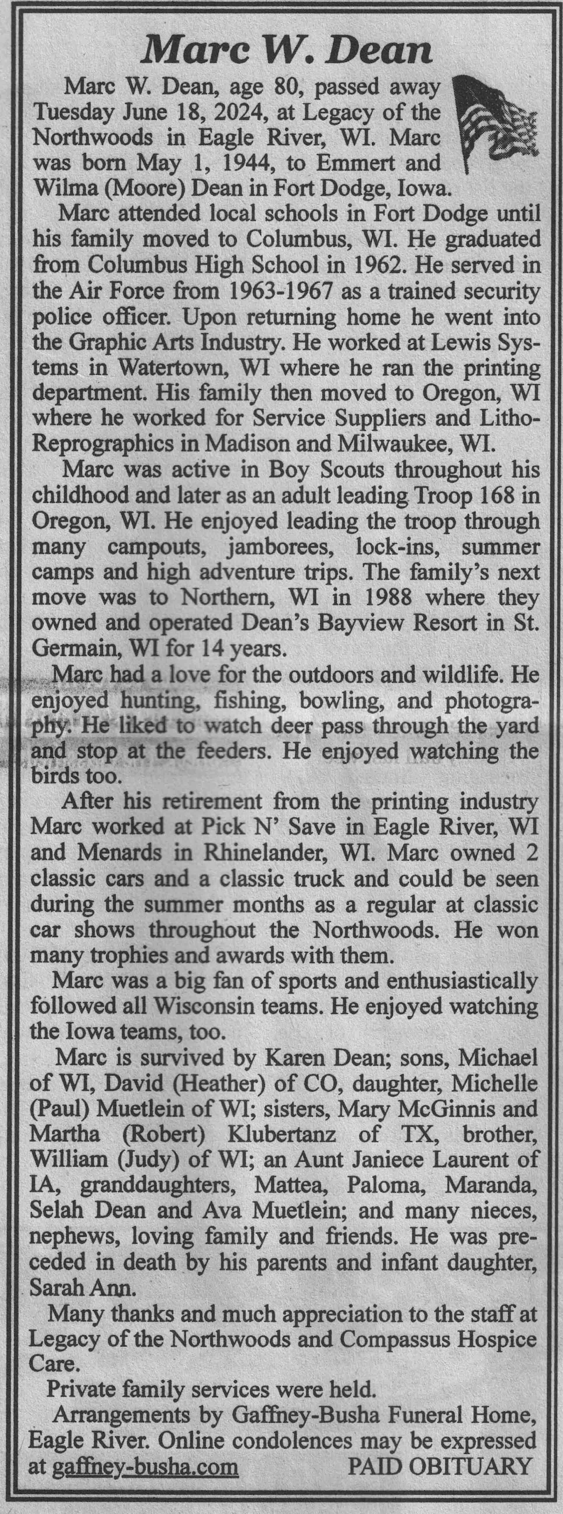 | Dean | Marc W | 01 May 1944 | 18 Jun 2024 | VCNR | 31 Jul 2024 | 4A |