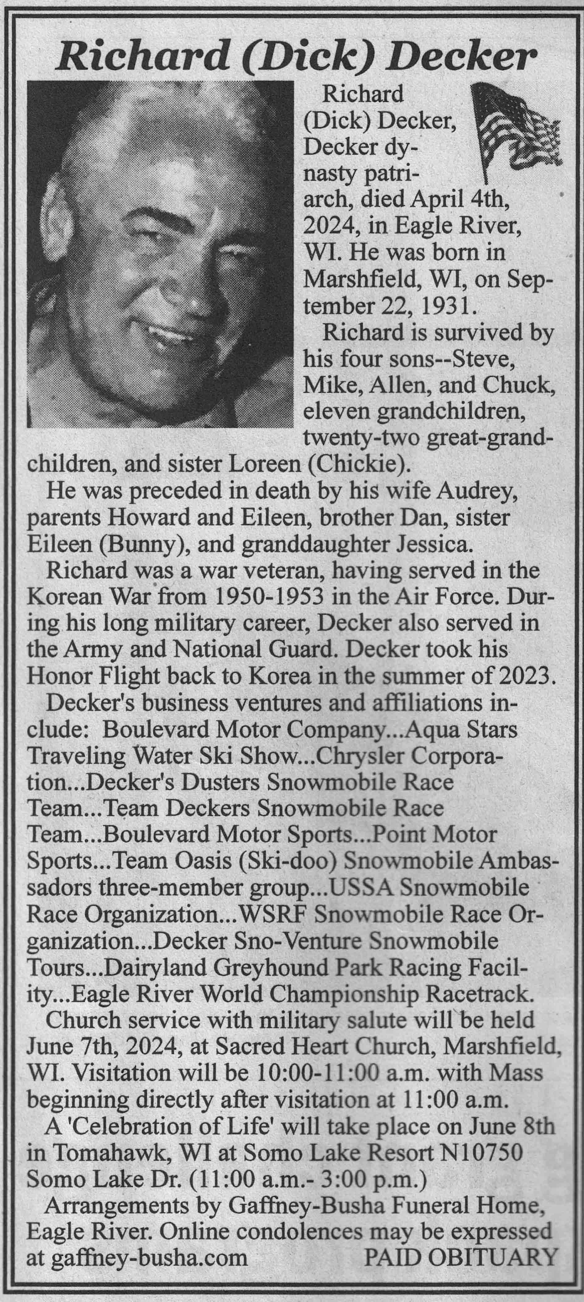 | Decker | Richard 'Dick' | 02 Sep 1931 | 04 Apr 2024 | VCNR | 01 May 2024 | 4A |