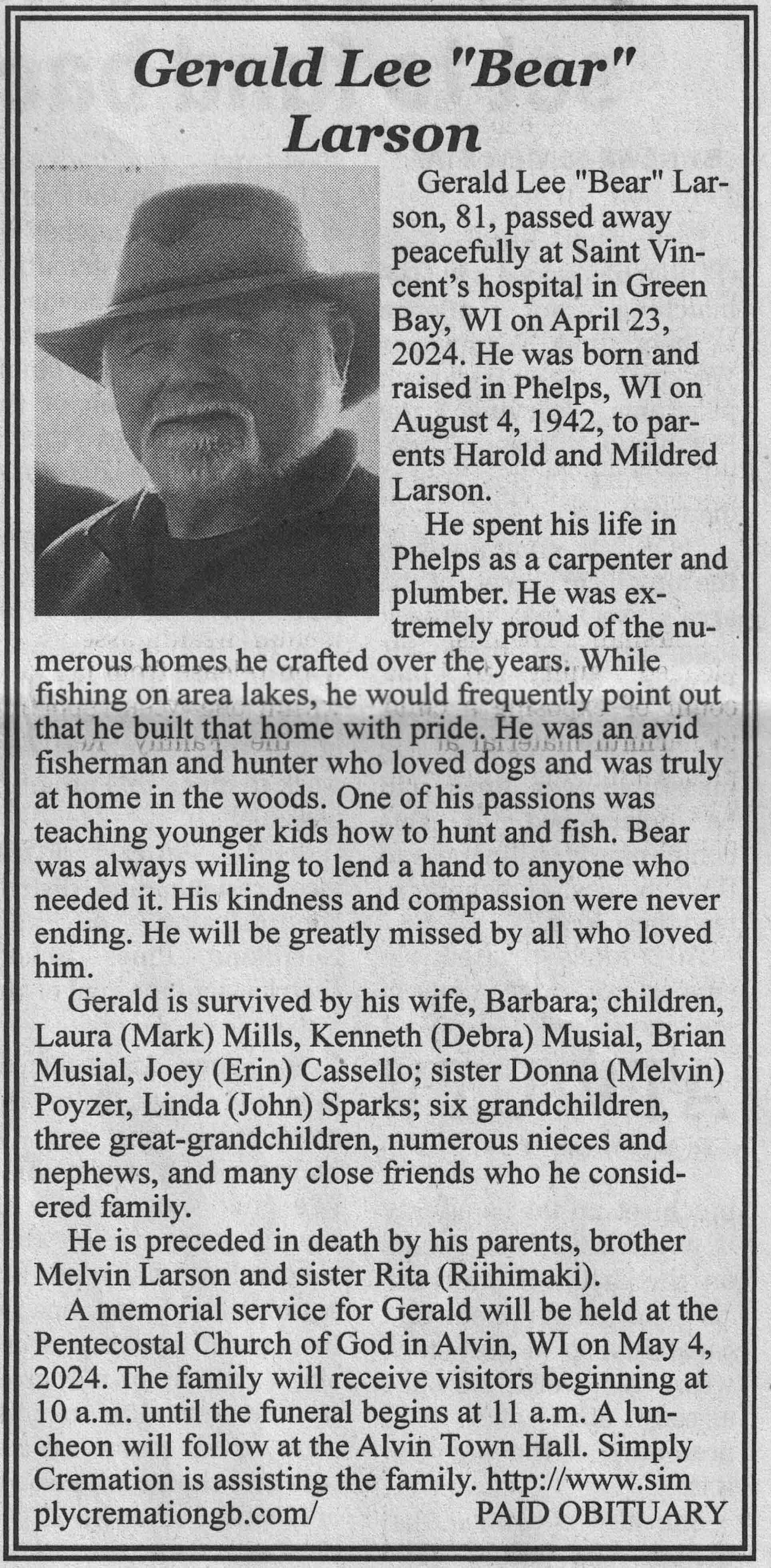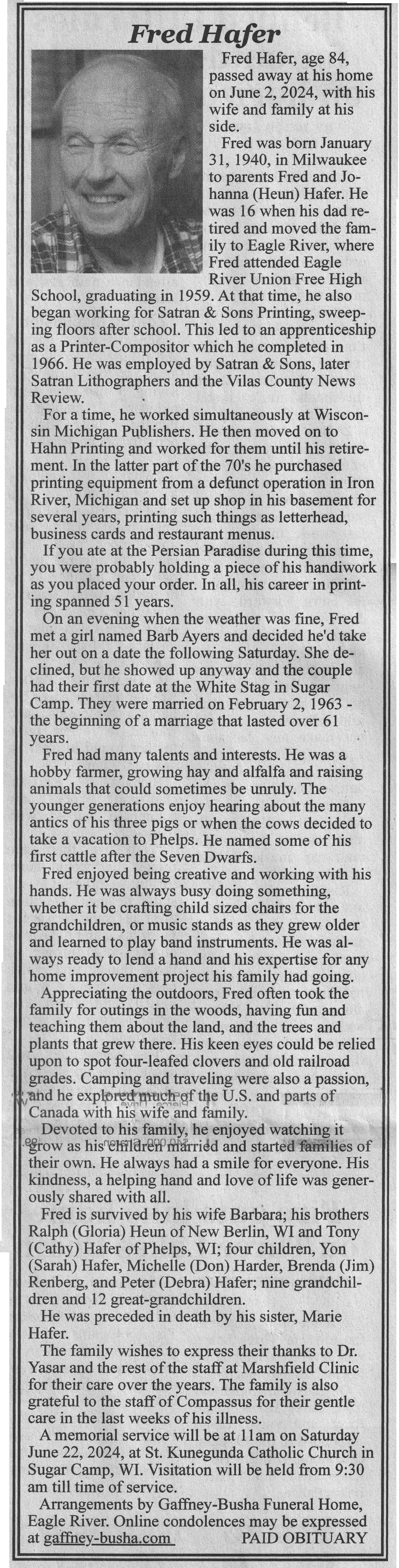 | Hafer | Fred | 31 Jan 1940 | 02 Jun 2024 | VCNR | 12 Jun 2024 | 4A |
