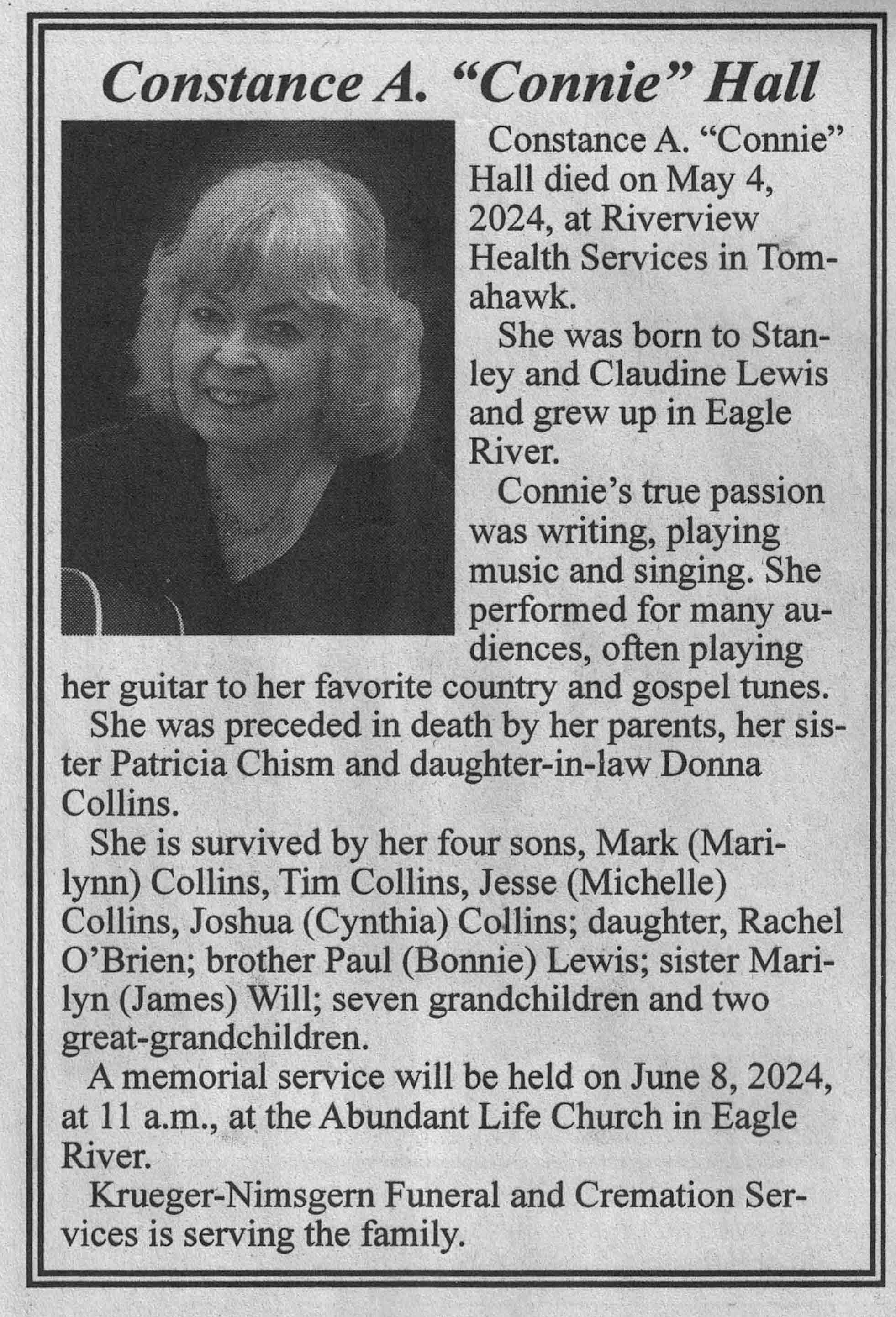 | Hall | Constance A 'Connie' (Lewis) | 04 May 2024 | VCNR | 15 May 2024 | 4A | |