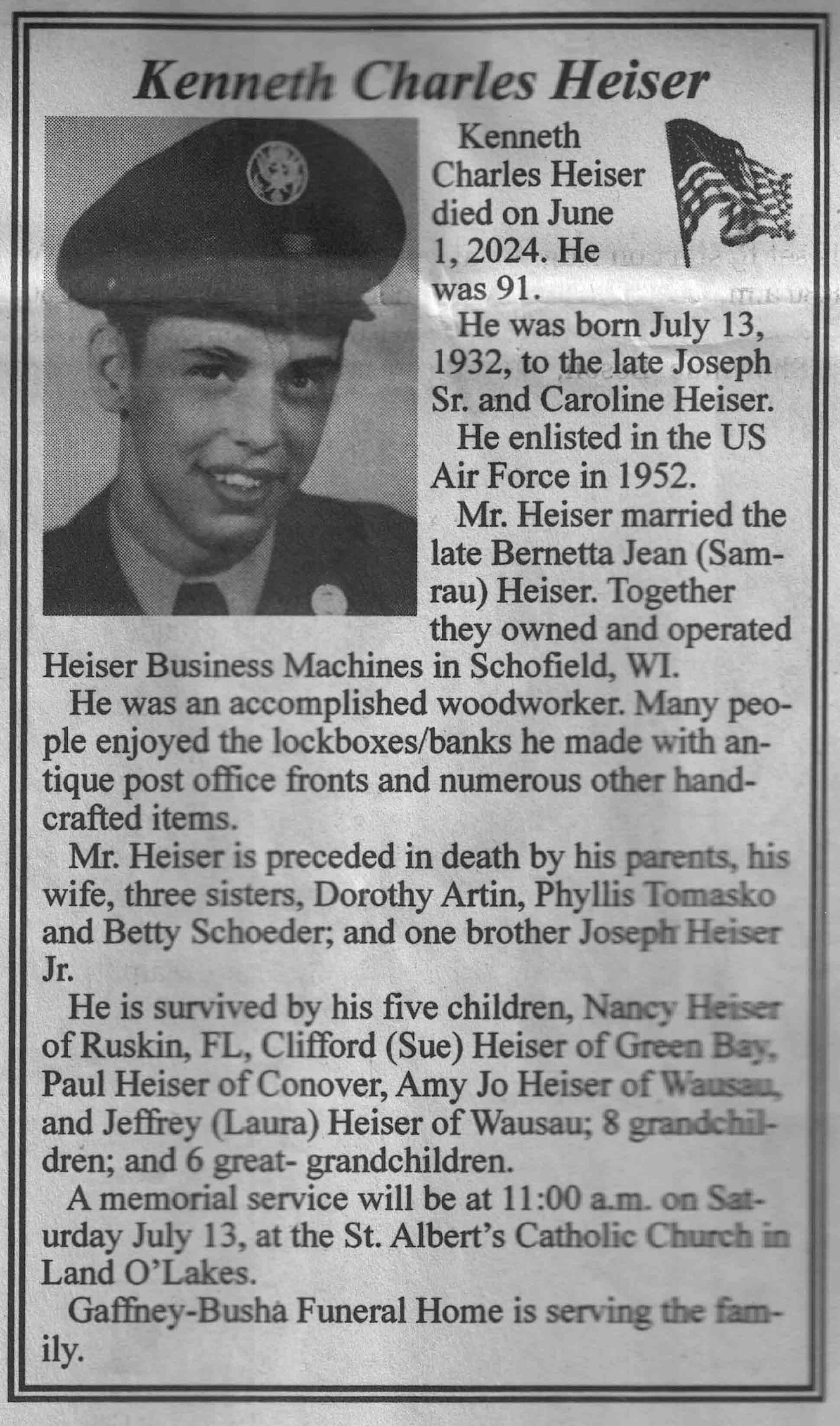 | Heiser | Kenneth Charles | 13 Jul 1932 | 01 Jun 2024 | VCNR | 10 Jul 2024 | 4A |