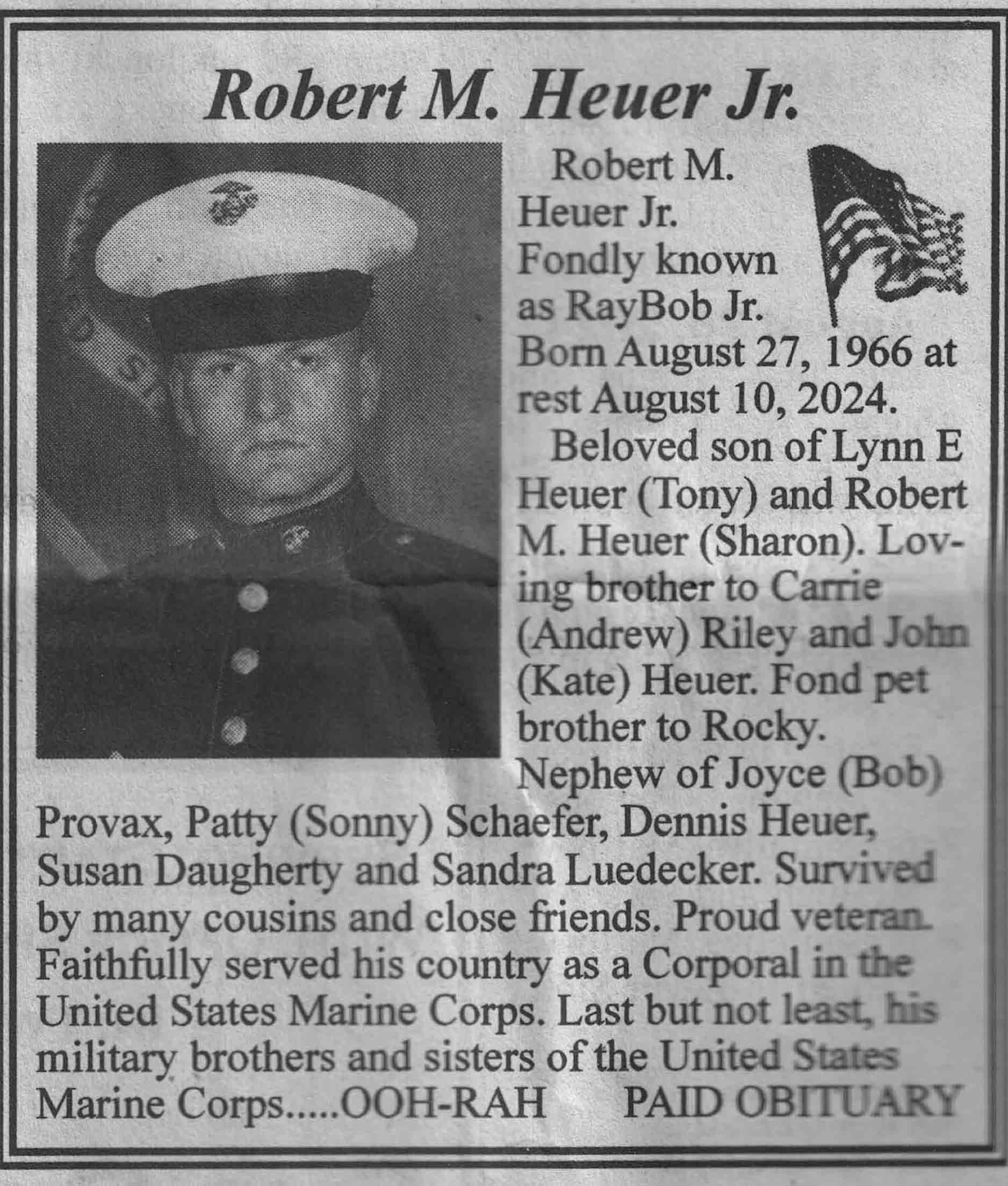 | Heuer | Robert M, Jr | 27 Aug 1966 | 10 Aug 2024 | VCNR | 11 Sep 2024 | 4A |