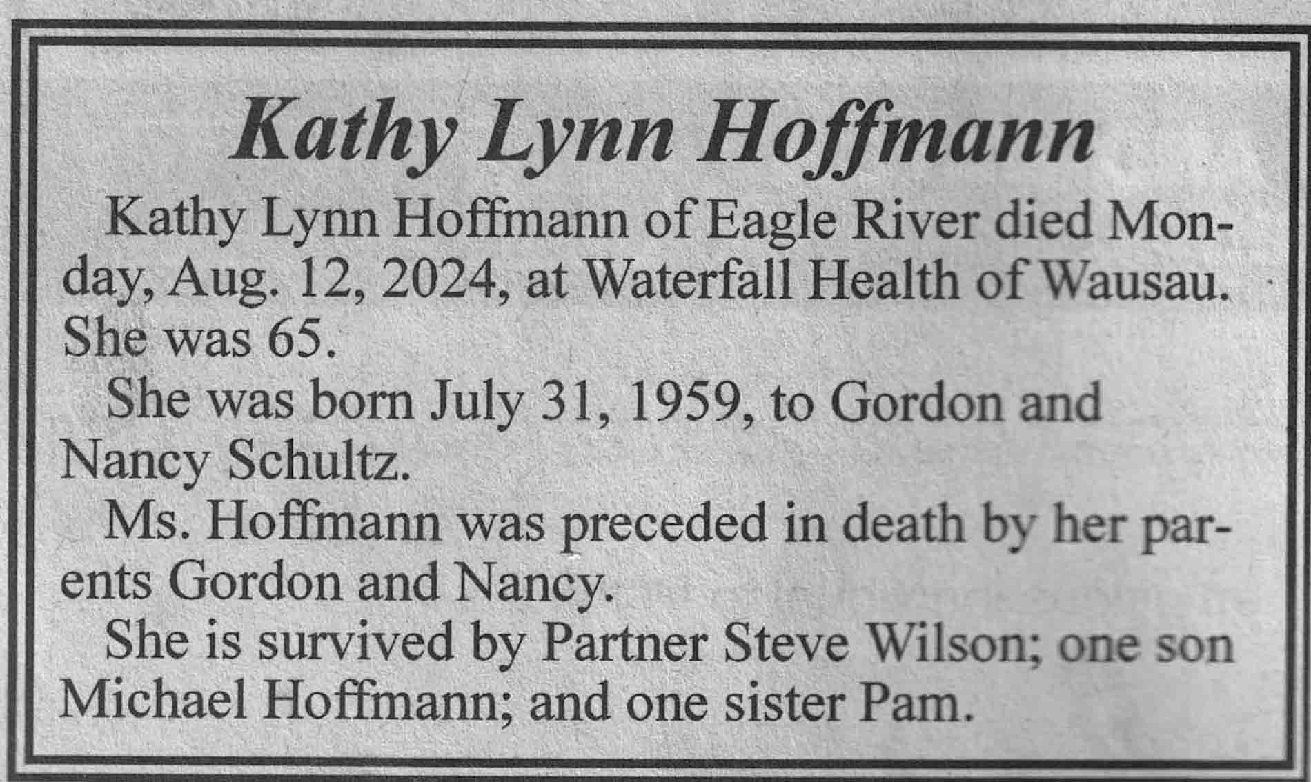 | Hoffmann | Kathy Lynn (Schultz) | 31 Jul 1959 | 12 Aug 2024 | VCNR | 18 Sep 2024 | 4A |