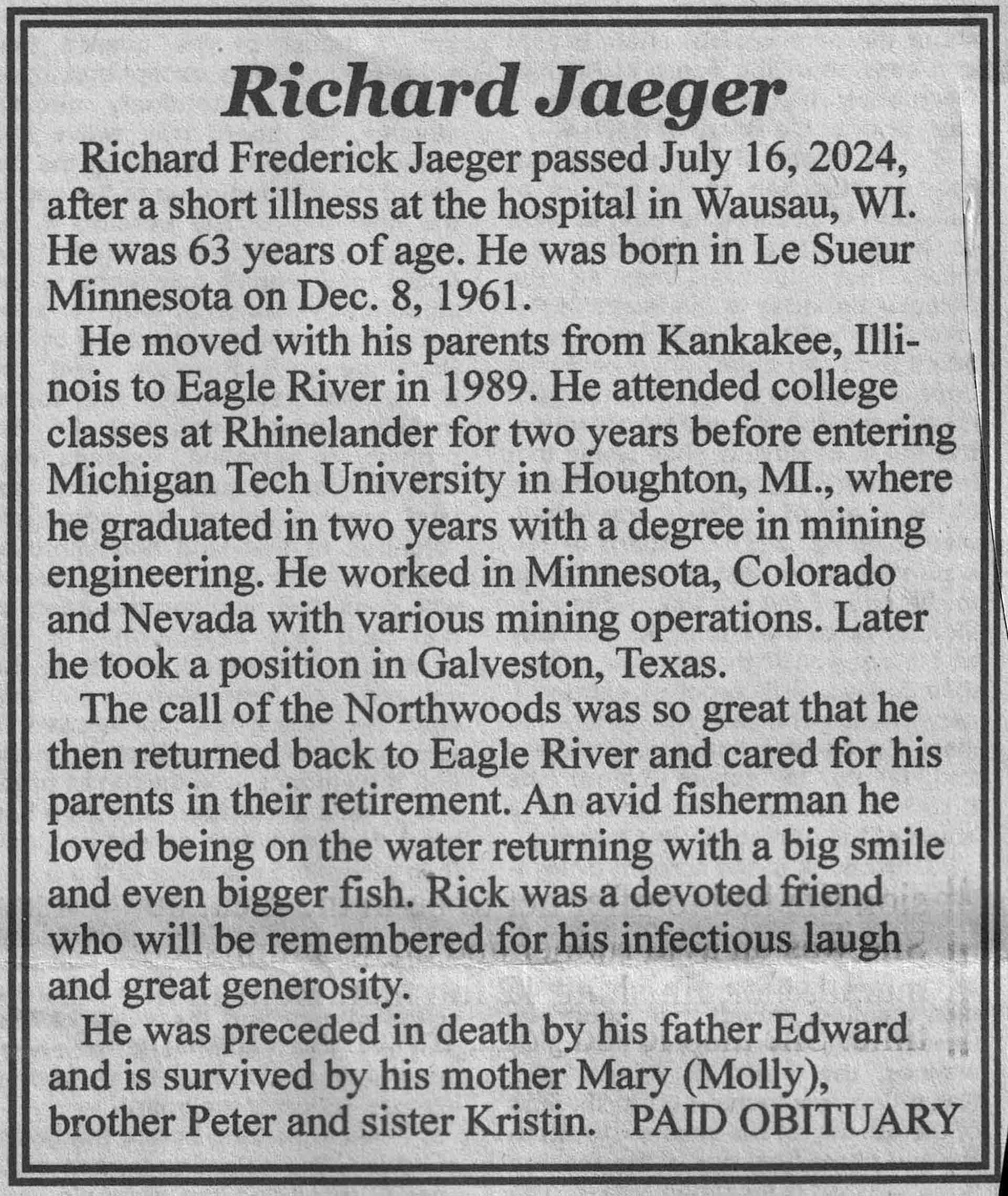 | Jaeger | Richard Frederick | 08 Dec 1961 | 16 Jul 2024 | VCNR | 31 Jul 2024 | 5A |