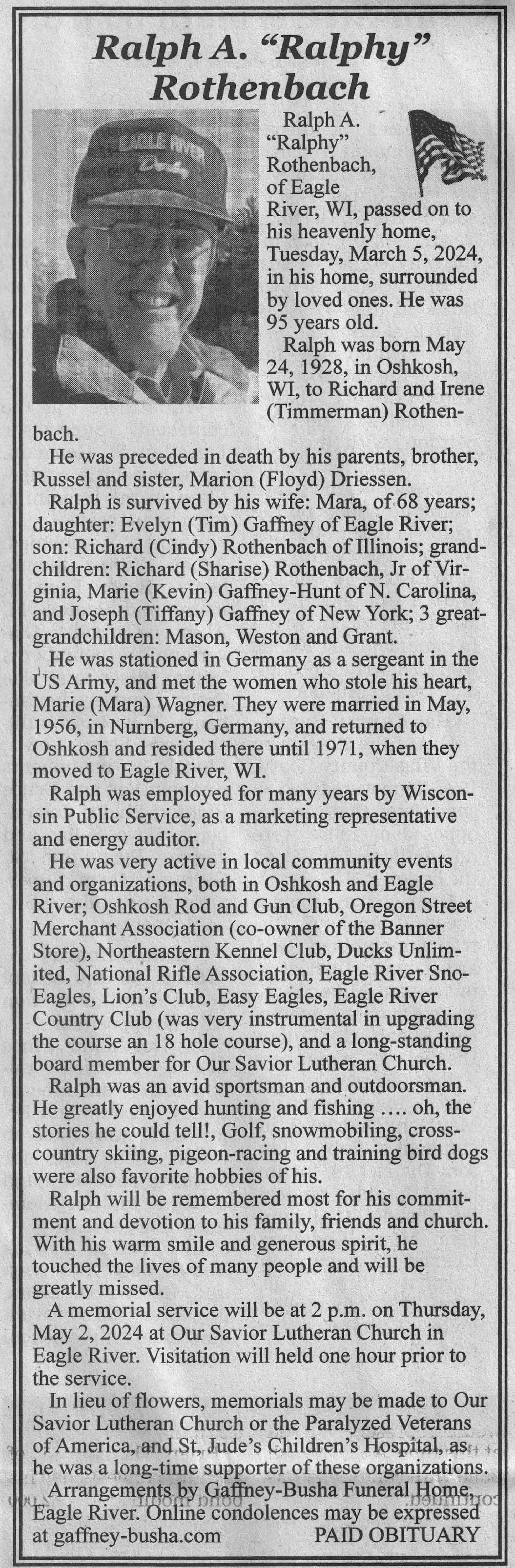| Rothenbach | Ralph A 'Ralphy' | 24 May 1928 | 05 Mar 2024 | VCNR | 10 Apr 2024 | 4A |