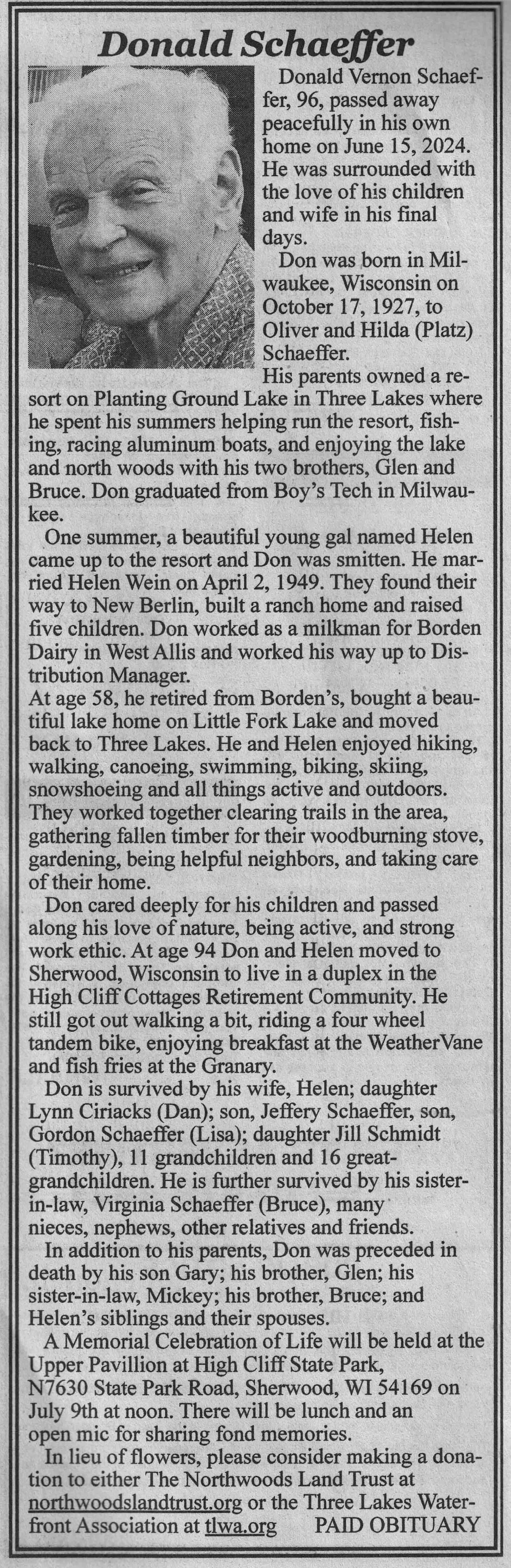 | Schaeffer | Donald Vernon | 17 Oct 1927 | 15 Jun 2024 | VCNR | 26 Jun 2024 | 5A |
