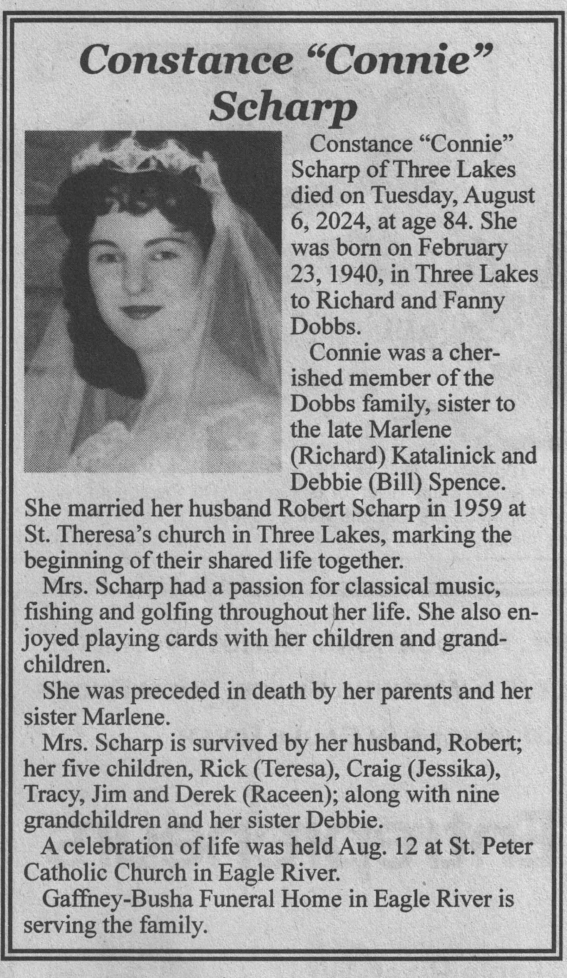 | Scharp | Constance 'Connie' (Dobbs) | 23 Feb 1940 | 06 Aug 2024 | VCNR | 14 Aug 2024 | 4A |