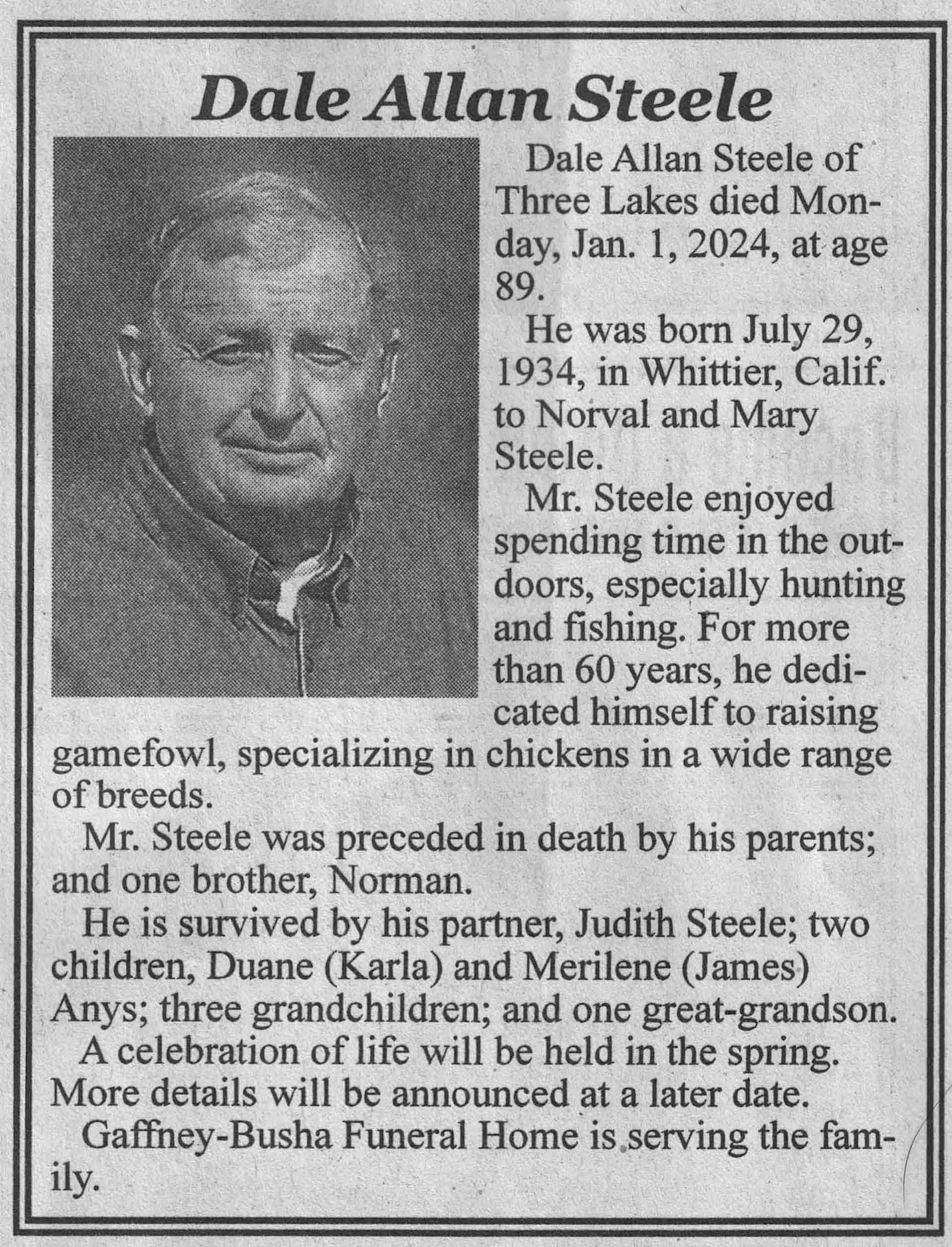 | Steele | Dale Allan | 02 Jul 1934 | 01 Jan 2024 | VCNR | 10 Jan 2024 | 5A |