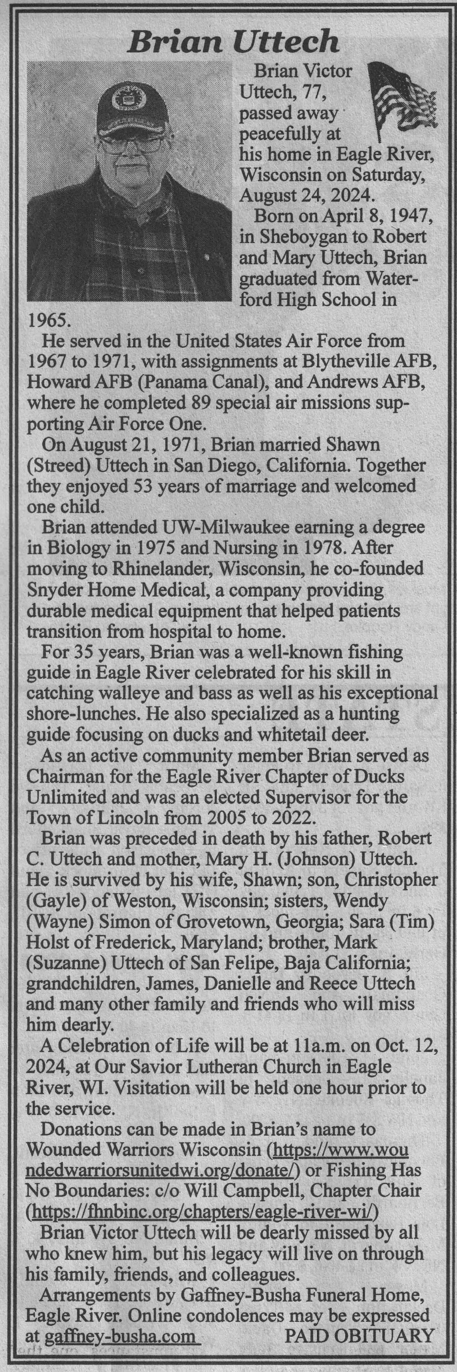 | Uttech | Brian | 08 Apr 1947 | 24 Aug 2024 | VCNR | 11 Sep 2024 | 4A |