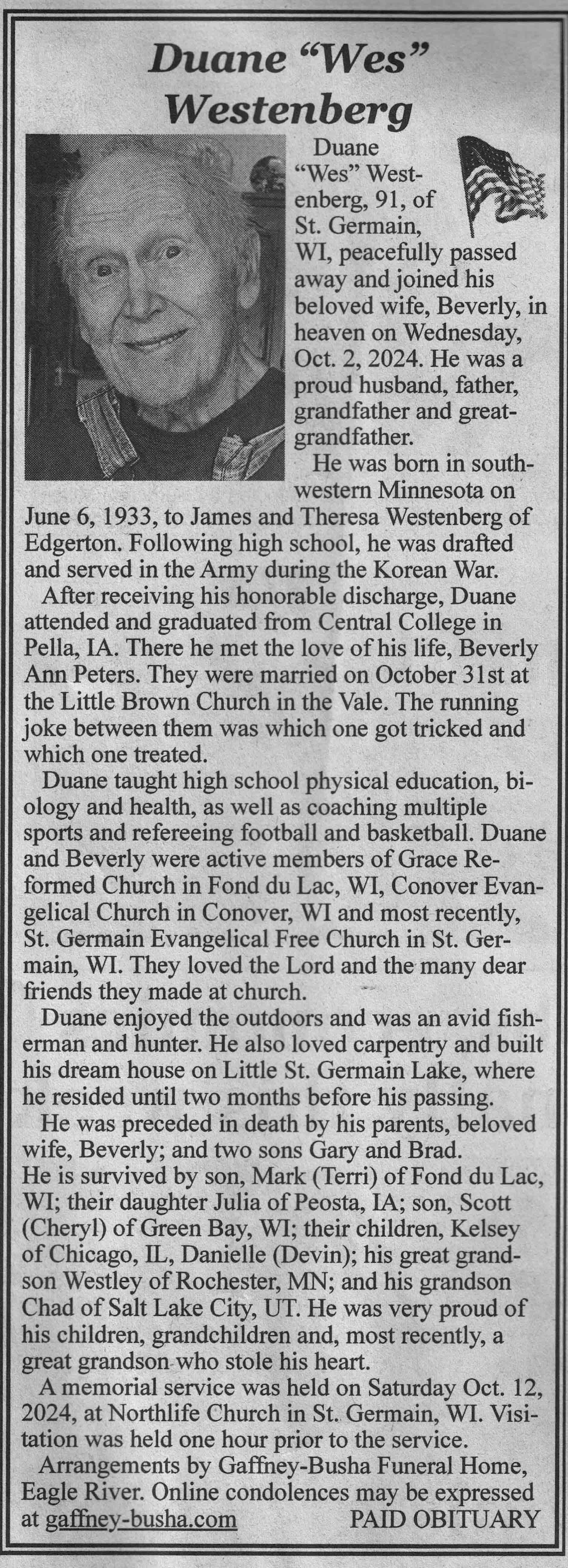 | Westenberg | Duane 'Wes' | 06 Jun 1933 | 02 Oct 2024 | VCNR | 16 Oct 2024 | 4A |